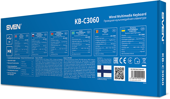Клавиатура механическая Sven - KB-C3060, Проводная, USBnum pad,waterproof, SV-020125
