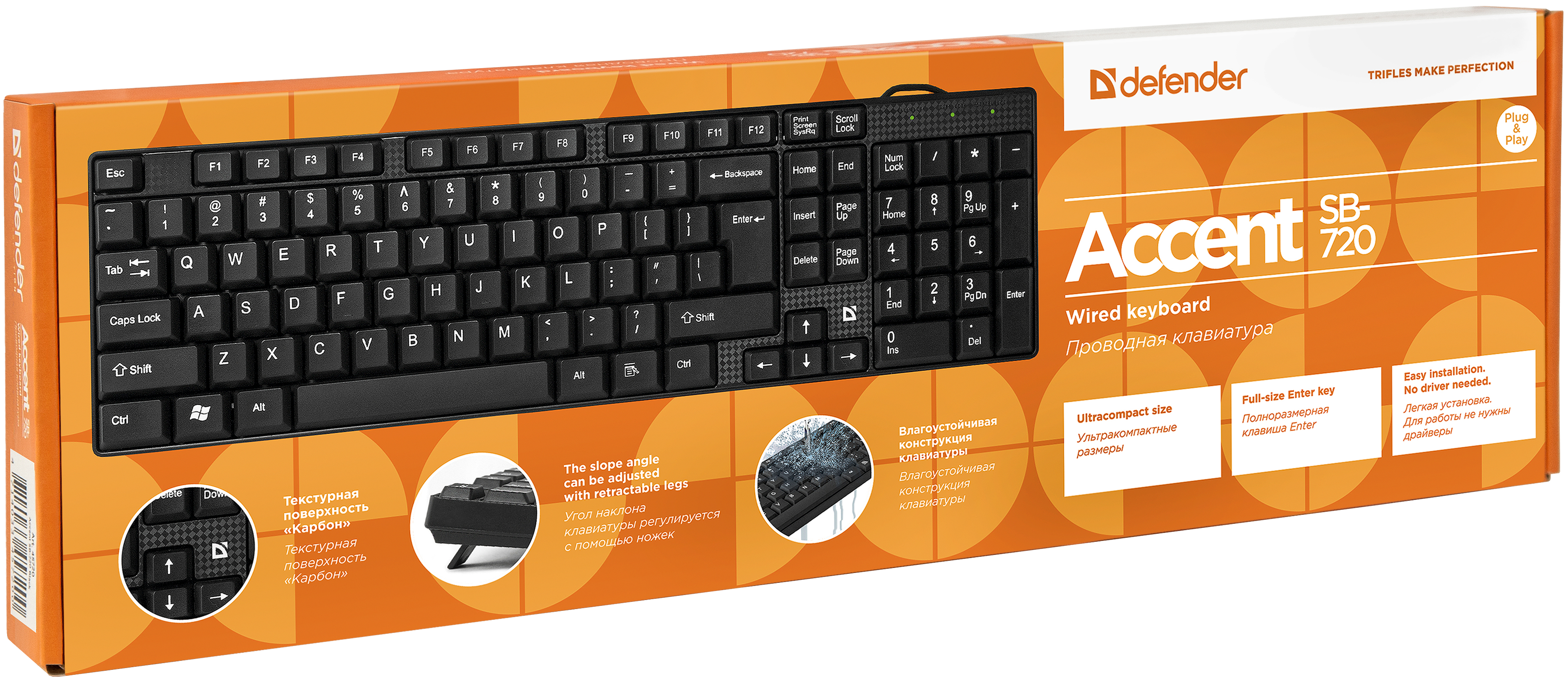 Клавиатура мембранная DEFENDER - Accent SB-720, Проводная, USBnum pad,waterproof, цвет чёрный, 45720