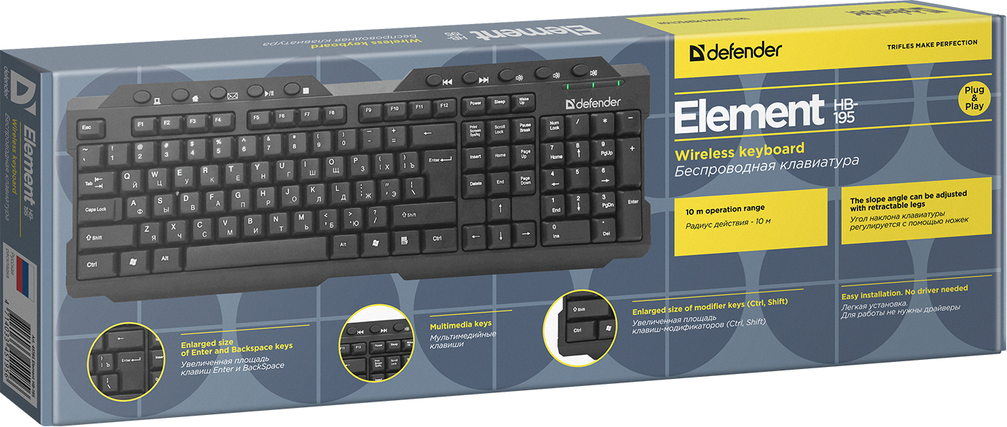 Выбрать товарыКлавиатура мембранная DEFENDER - Element HB-195, Беспроводнаяnum pad, цвет чёрный, 45195