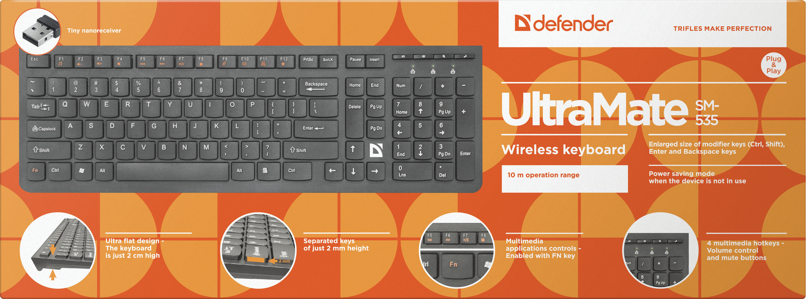 Выбрать товарыКлавиатура мембранная DEFENDER - UltraMate SM-535, Беспроводнаяnum pad, 45535