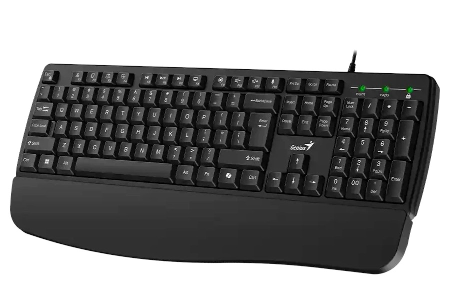 Данное устройство ввода характеризуется лаконичным дизайном и высокой эргономичностью. Клавиши имеют стандартный размер и удобное межкнопочное расстояние, что сводит к минимуму количество опечаток при слепом наборе. Нажатие происходит с четко выраженным, но тихим щелчком. Материал корпуса устойчив к износу и не собирает отпечатки пальцев, сохраняя опрятный вид офисного места. Кабель подключения имеет достаточную длину для комфортного размещения на столе. Прибор демонстрирует стабильную работу без задержек, что важно для оперативной обработки данных. Качество сборки находится на высоком уровне для своей категории.