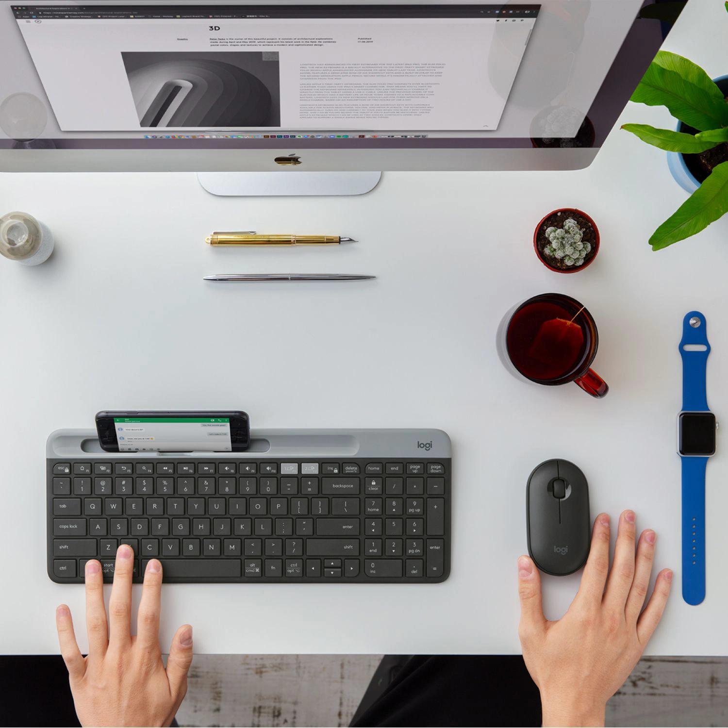 Клавиатура ножничная Logitech - K580, Беспроводная, 10 метров, USBnum pad, цвет чёрно-серебристый, 920-009208