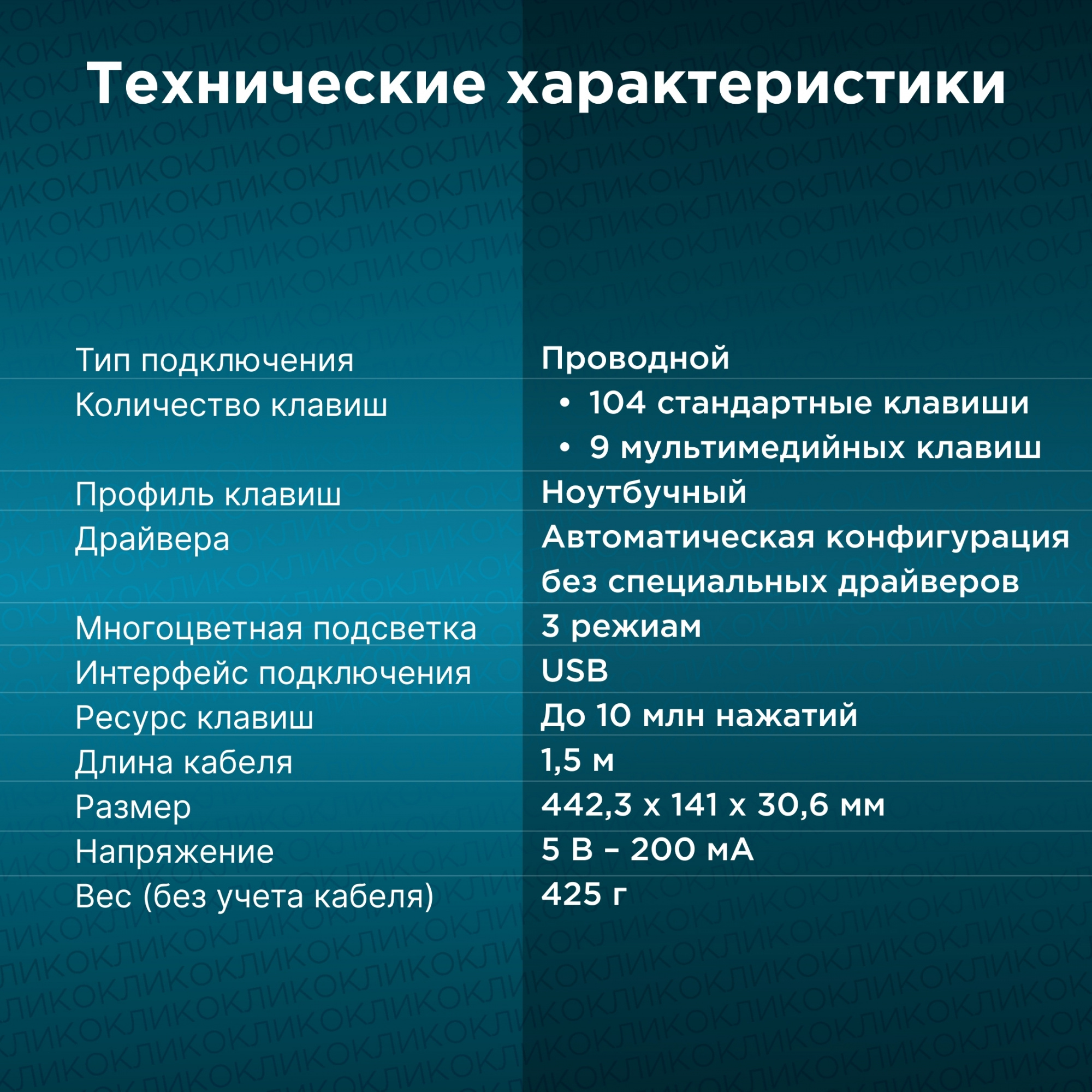 Клавиатура мембранная OKLICK - 490ML, Проводная, USB, illumination keysnum pad, цвет чёрный, 1067202