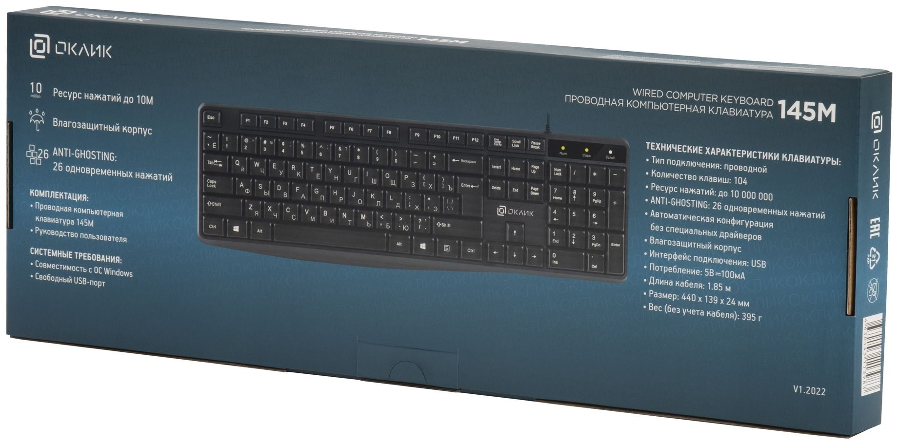 Клавиатура мембранная OKLICK - 145M, Проводная, USBnum pad,waterproof, цвет чёрный, 1659983
