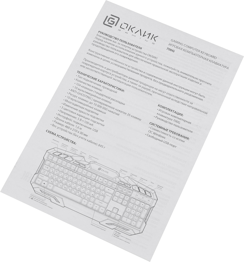 Клавиатура OKLICK - 700G Dynasty, Проводная, USB, gaming, illumination keysnum pad, цвет чёрный, 1061657