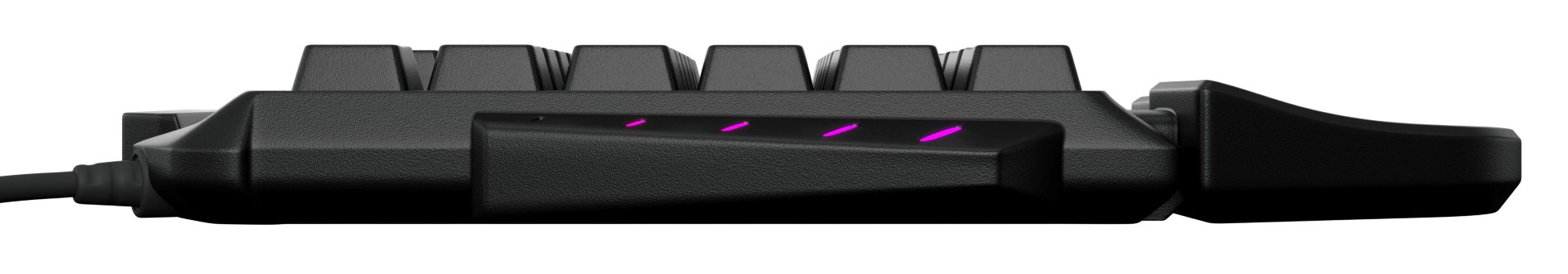 Звук кнопок умеренный, печатать комфортно. Для новичков в играх или повседневной деятельности. Устойчивая на столе, смотрится стильно и не громоздко.