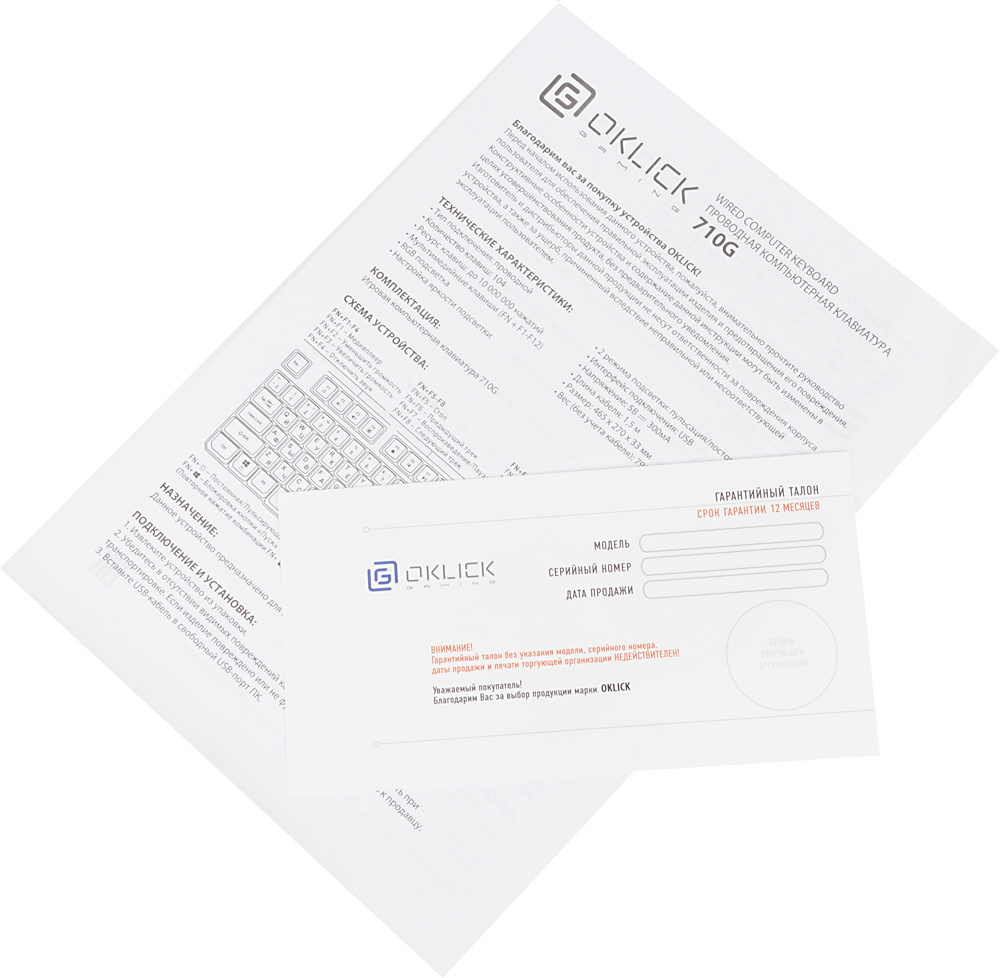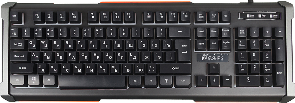 Клавиатура OKLICK - 710G BLACK DEATH, Проводная, USB, gaming, illumination keys, num pad, цвет чёрно-серый, 476393