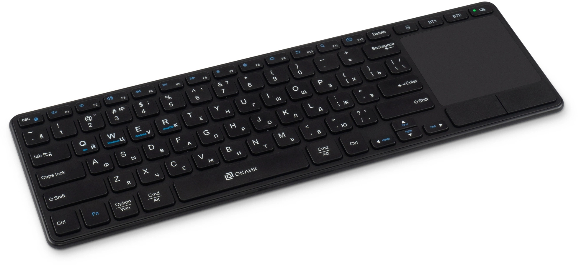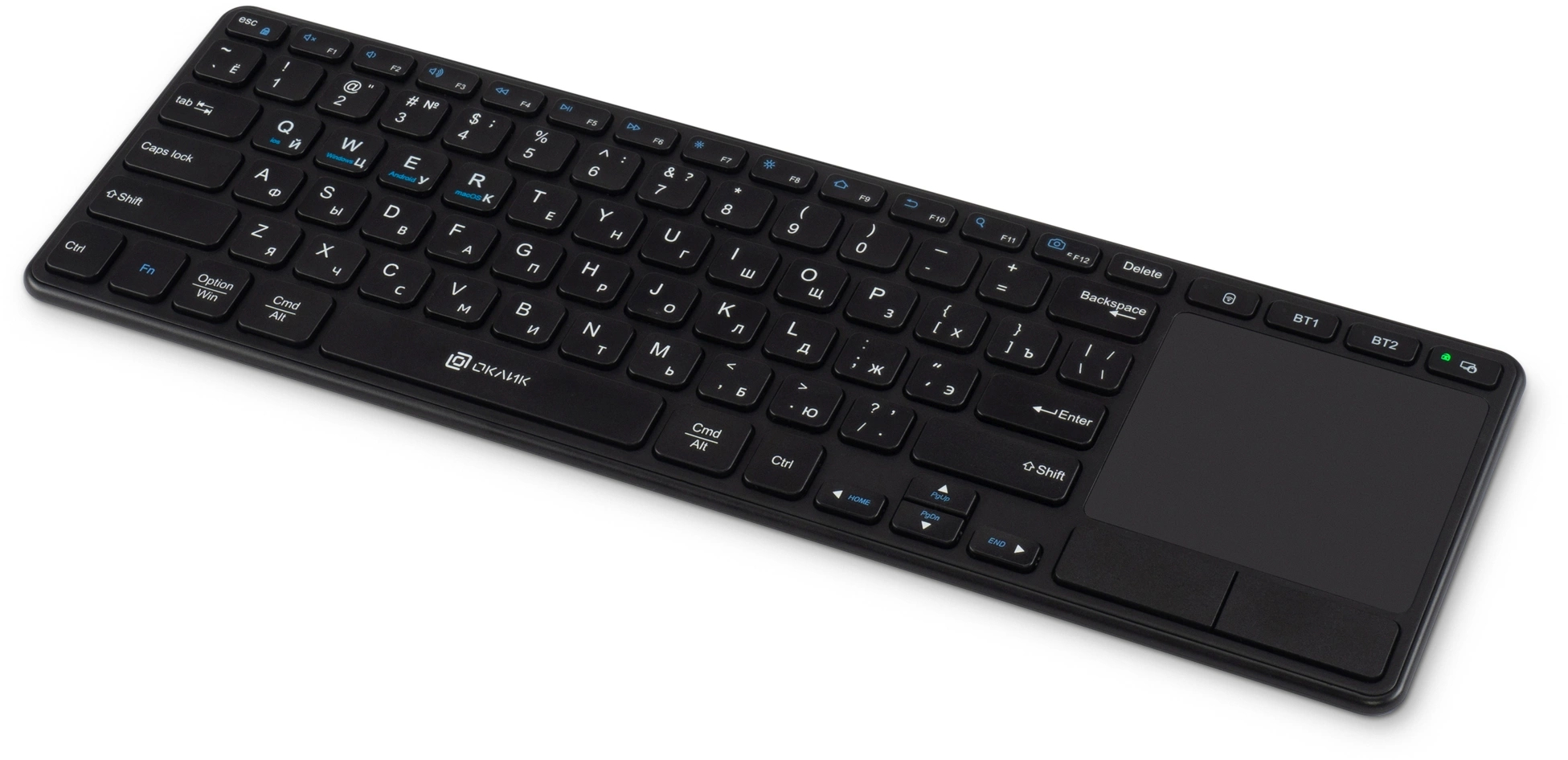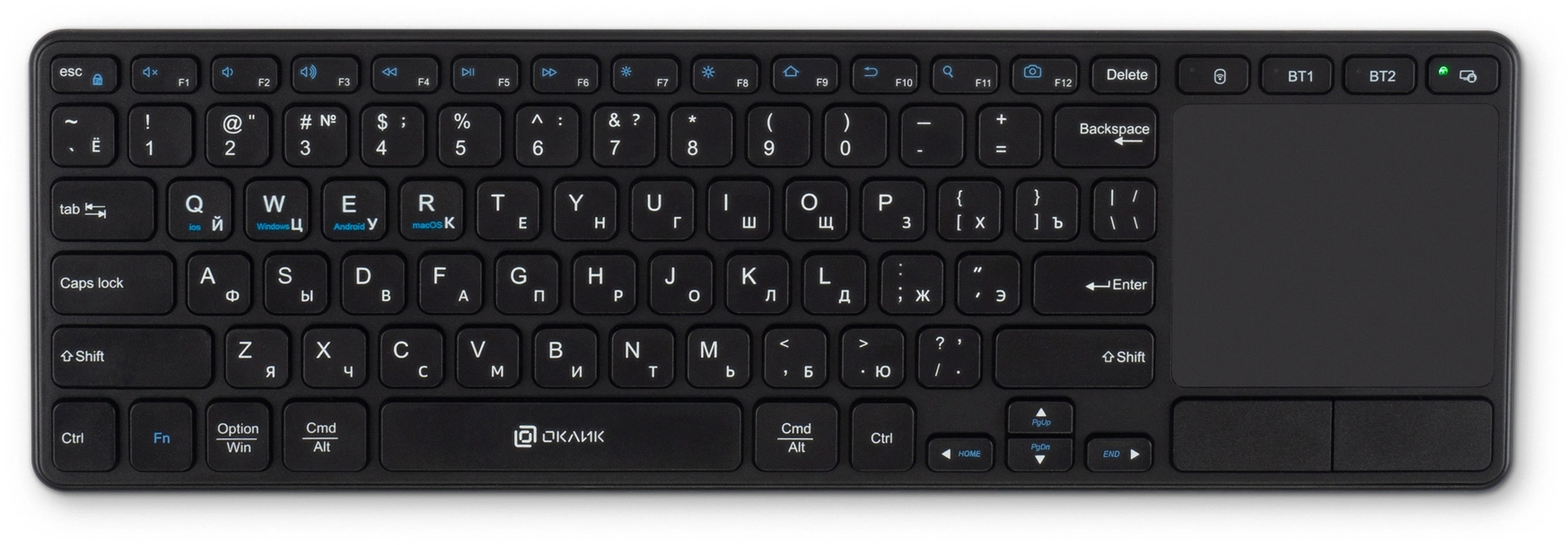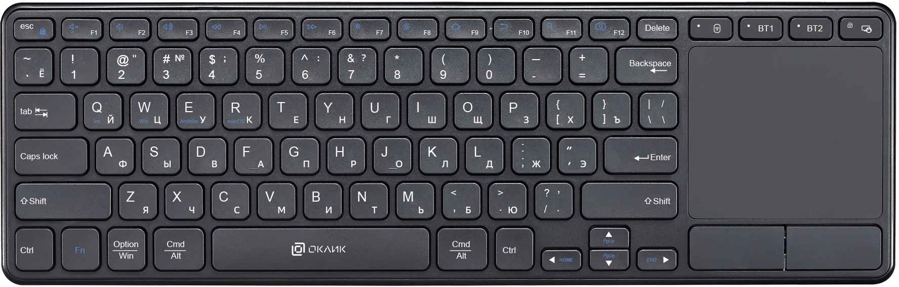 Клавиатура OKLICK - K614W, Беспроводная, 10 метров, USB, TouchPad, цвет чёрный, 1979327
