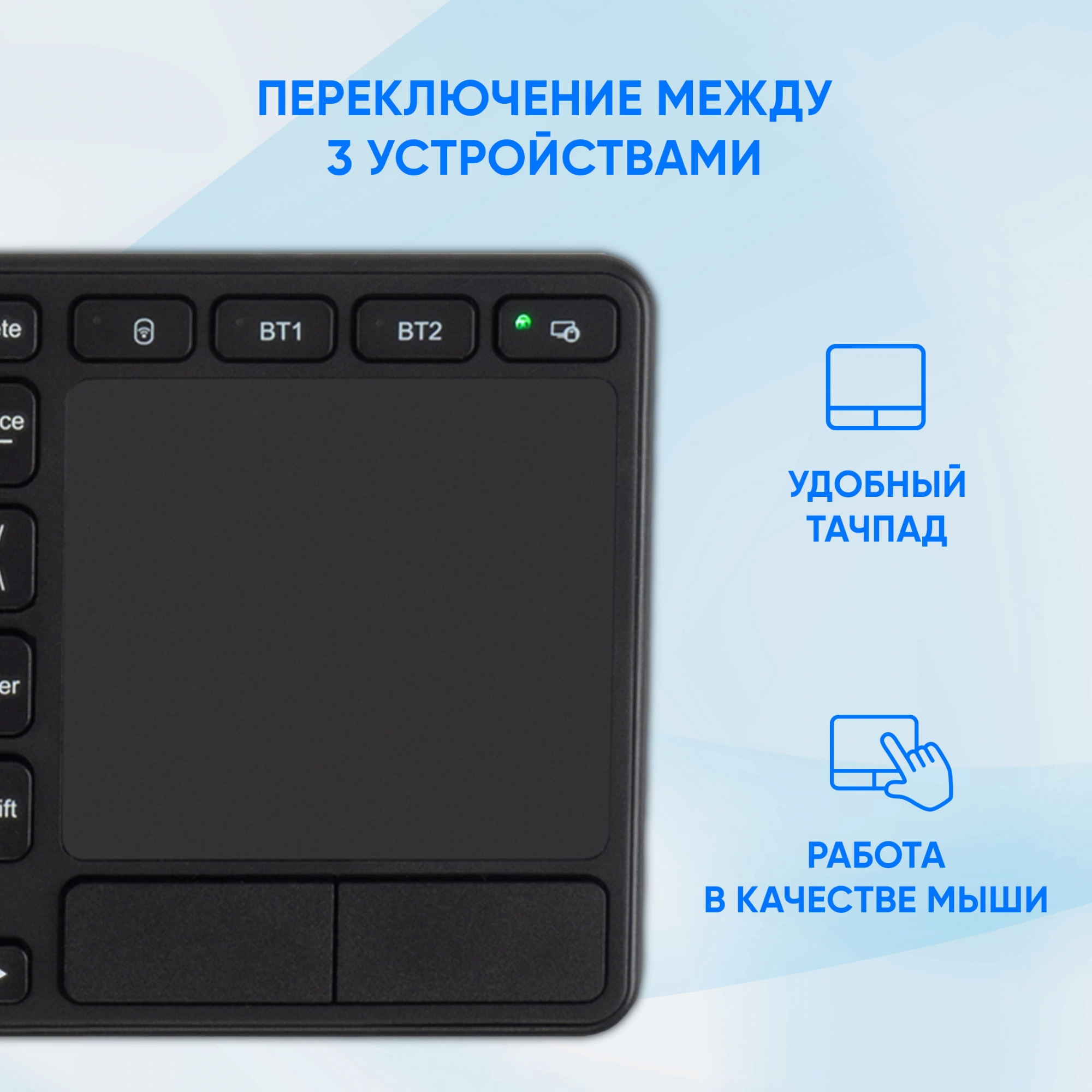 Набор низкопрофильных клавиш приятен для продолжительной печати, батарейки вкомплекте.