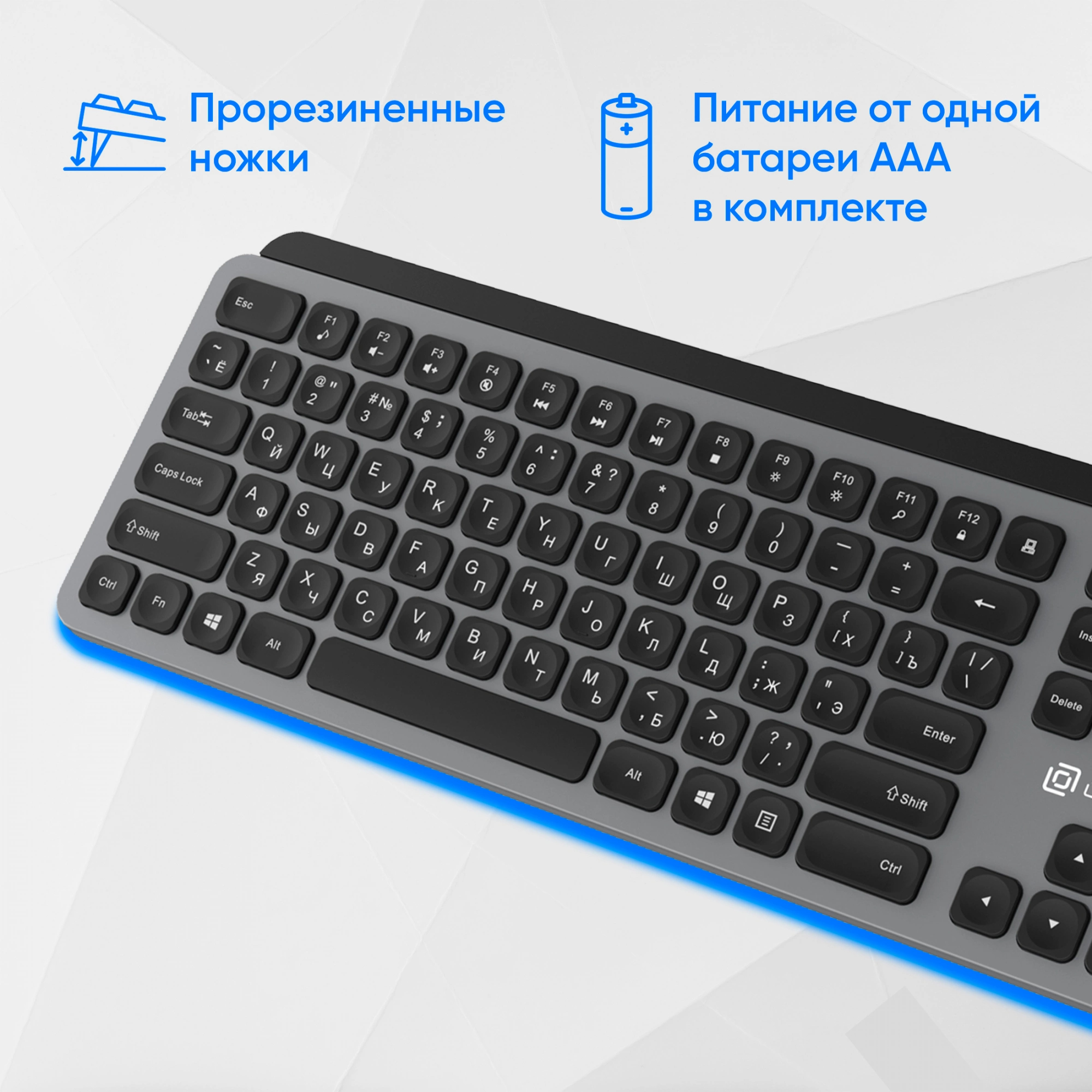 Надёжная мембранная клавиатура с радиоканалом, освобождающим стол от проводов. Клавиши нажимаются плавно, при этом щелчок практически неслышен. Важная особенность — длительная работа от батареек.