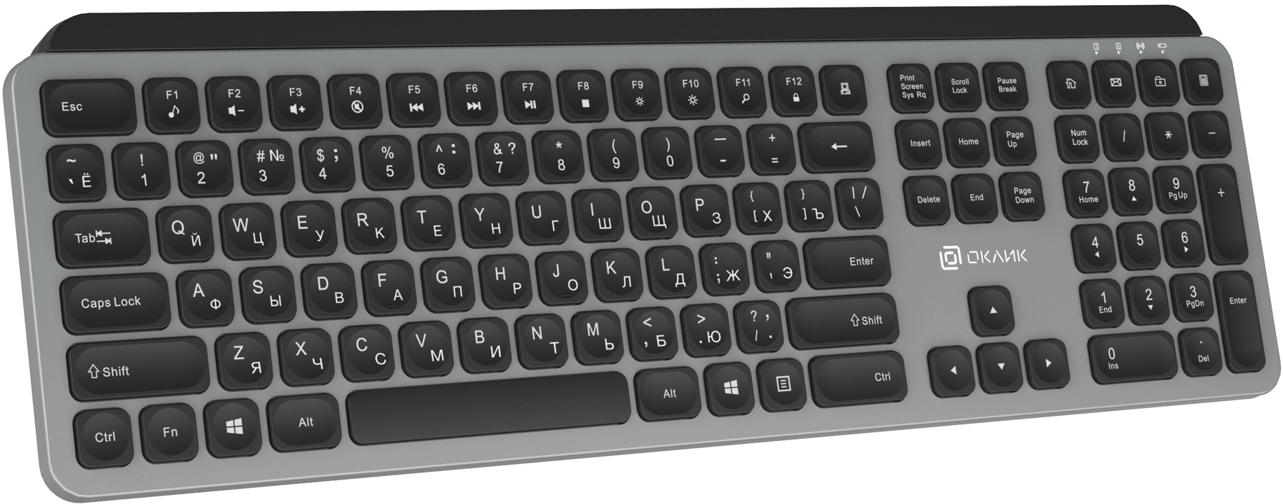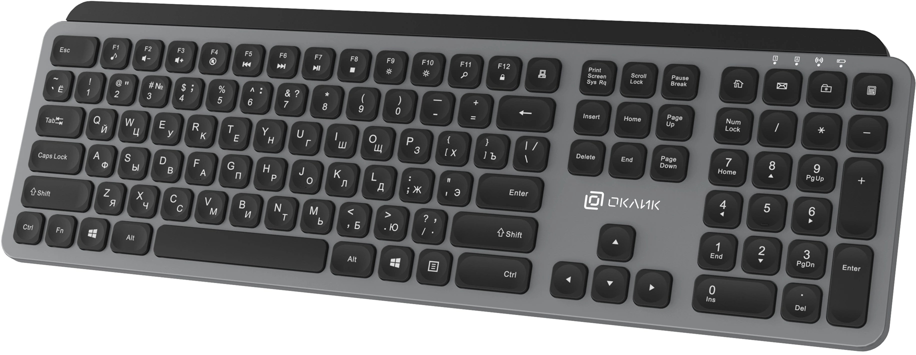 Клавиатура OKLICK - K859W, Беспроводная, 10 метров, USBnum pad, цвет чёрный, 2002136