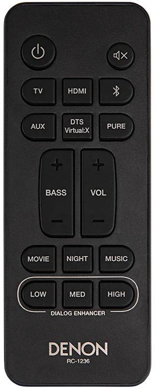Тонкая звуковая панель, которая улучшает звук телевизора благодаря виртуальному 2.1-режиму: встроенные сабвуферы дают ощутимые басы. Подключение по HDMI ARC или оптике, качество Denon традиционно высокое.