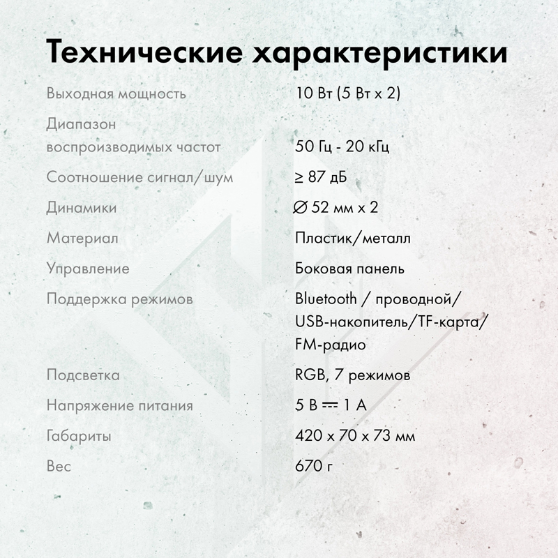 Лёгок в установке, занимает минимум места, а благодаря подсветке становится ярким акцентом рабочего стола. Звучит чисто, без сильных искажений. Если нужен компактный звуковой апгрейд, это хороший вариант.