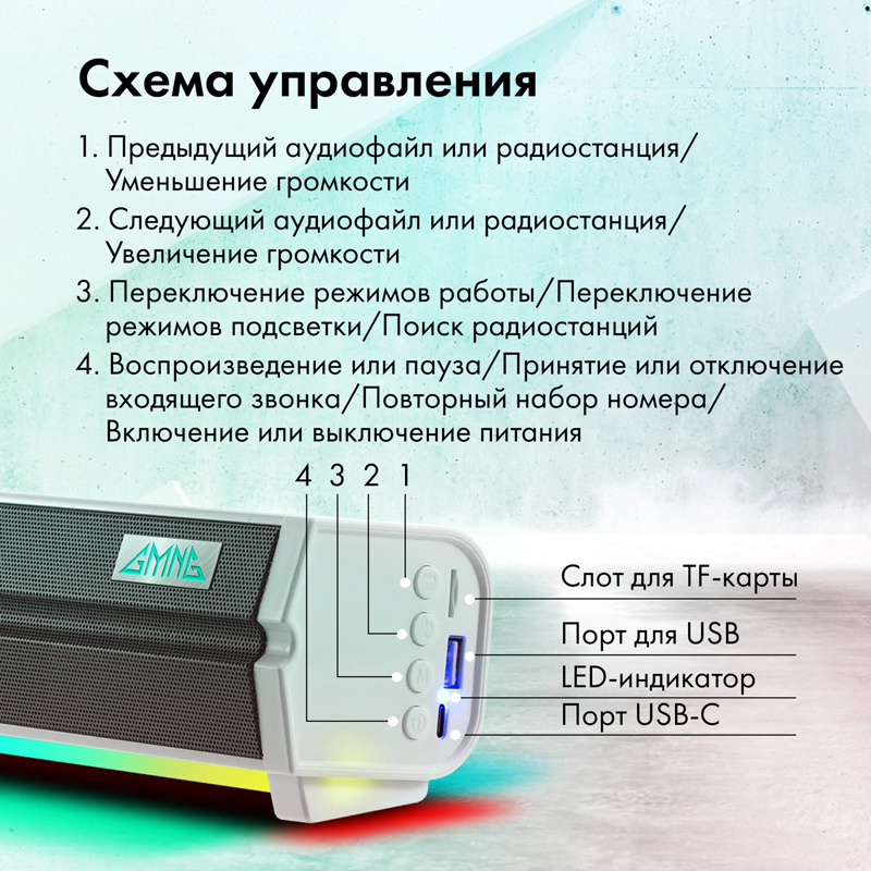 Саундбар GMNG - GG-SP100UB, 2.0, 10W, 20Гц-16КГц, USB, цвет белый, 1915873
