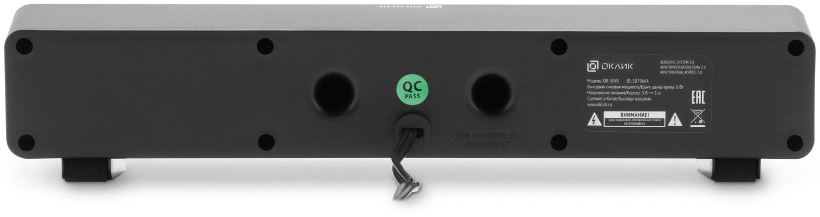Саундбар OKLICK - OK-504S, 2.0, 6W, 60Гц-20КГц, цвет чёрный, 1879664