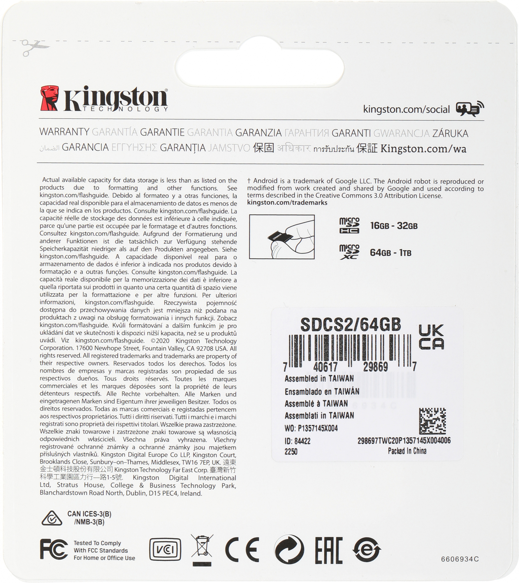 Карта памяти Kingston - Canvas Select Plus + adapter, microSDXC, read speed 100Mb/s, UHS-I Class 1, V10, A1, 64GB, SDCS2/64GB
