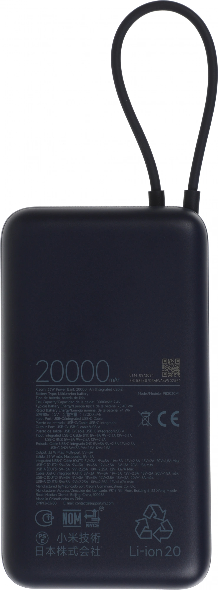 Портативный аккумулятор Power Bank XIAOMI BHR8975GL, 1xUSB Type A, 1xUSB Type C, 20 000mAh, Li-Ion, синий, BHR8975GL
