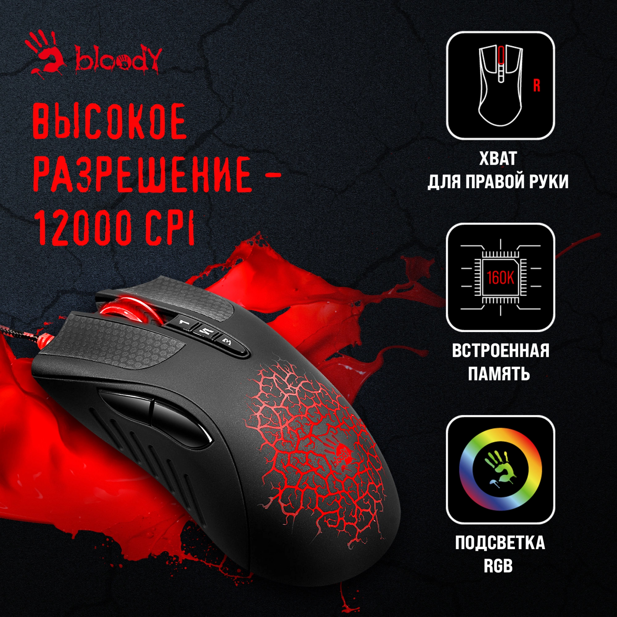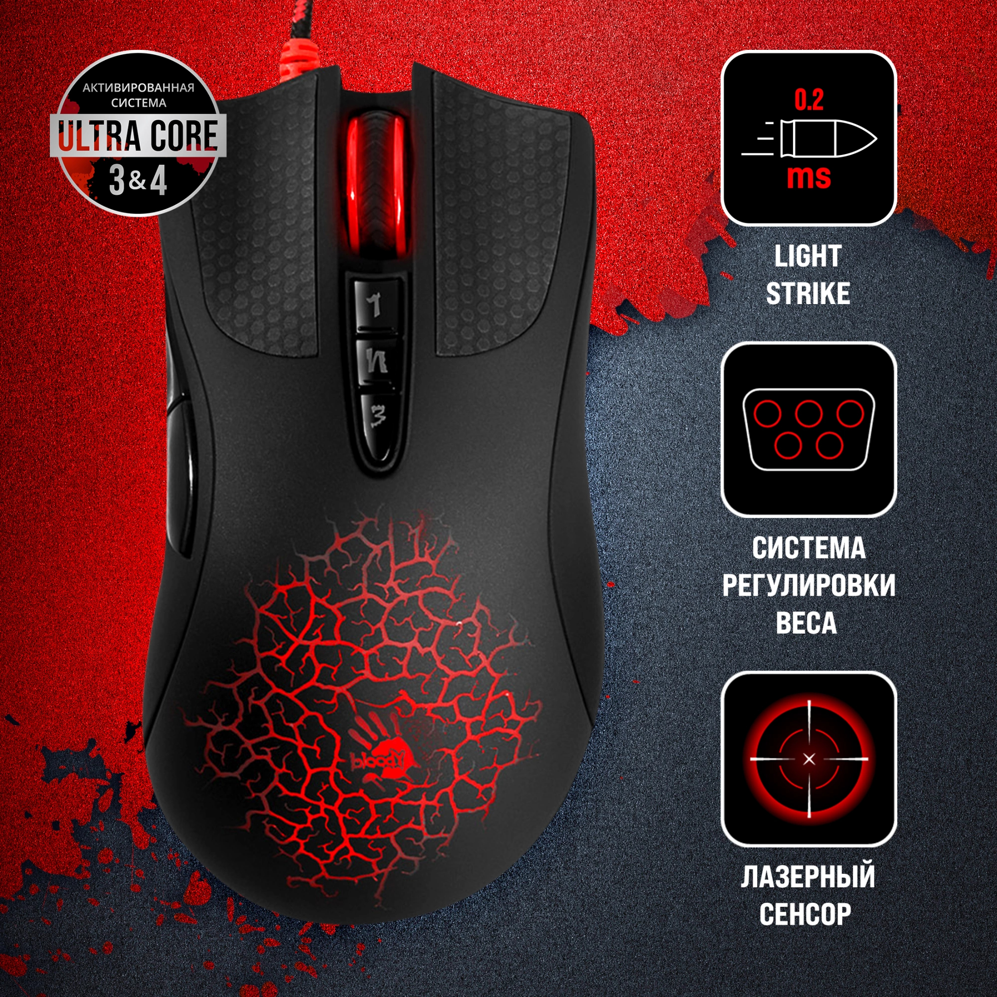 Мышь A4Tech - Bloody AL90 Blazing, Проводная, USB, Laser, 8 btns, gaming, цвет чёрный, AL90 ACTIVATED