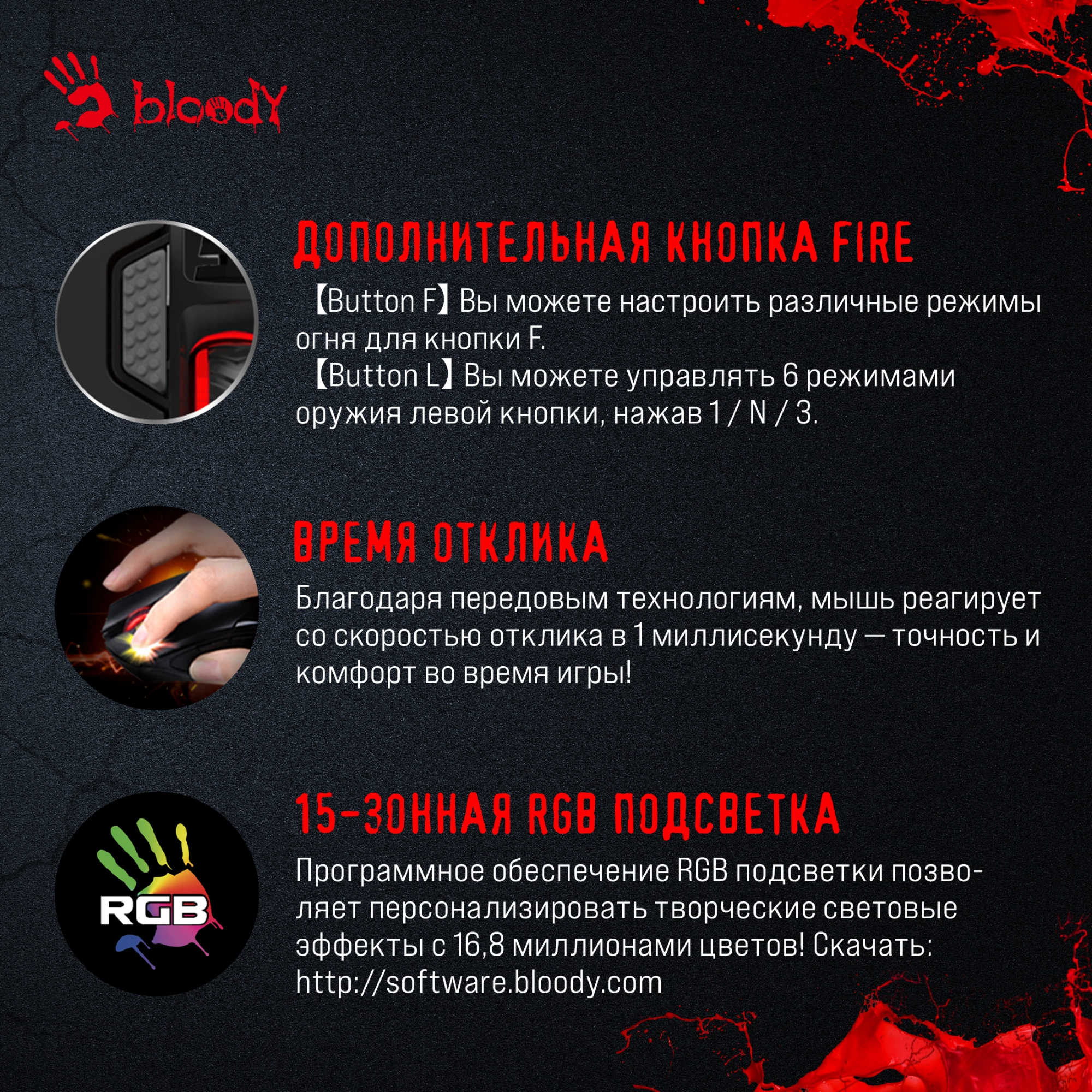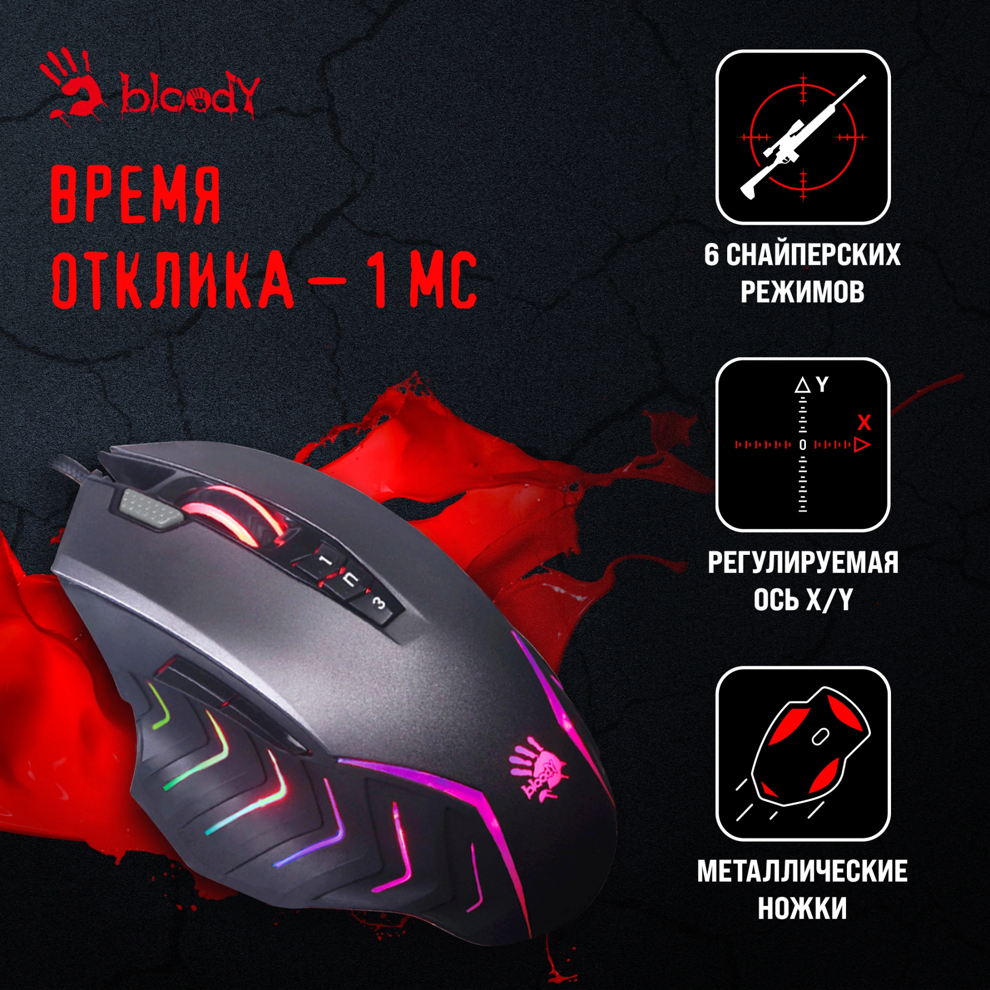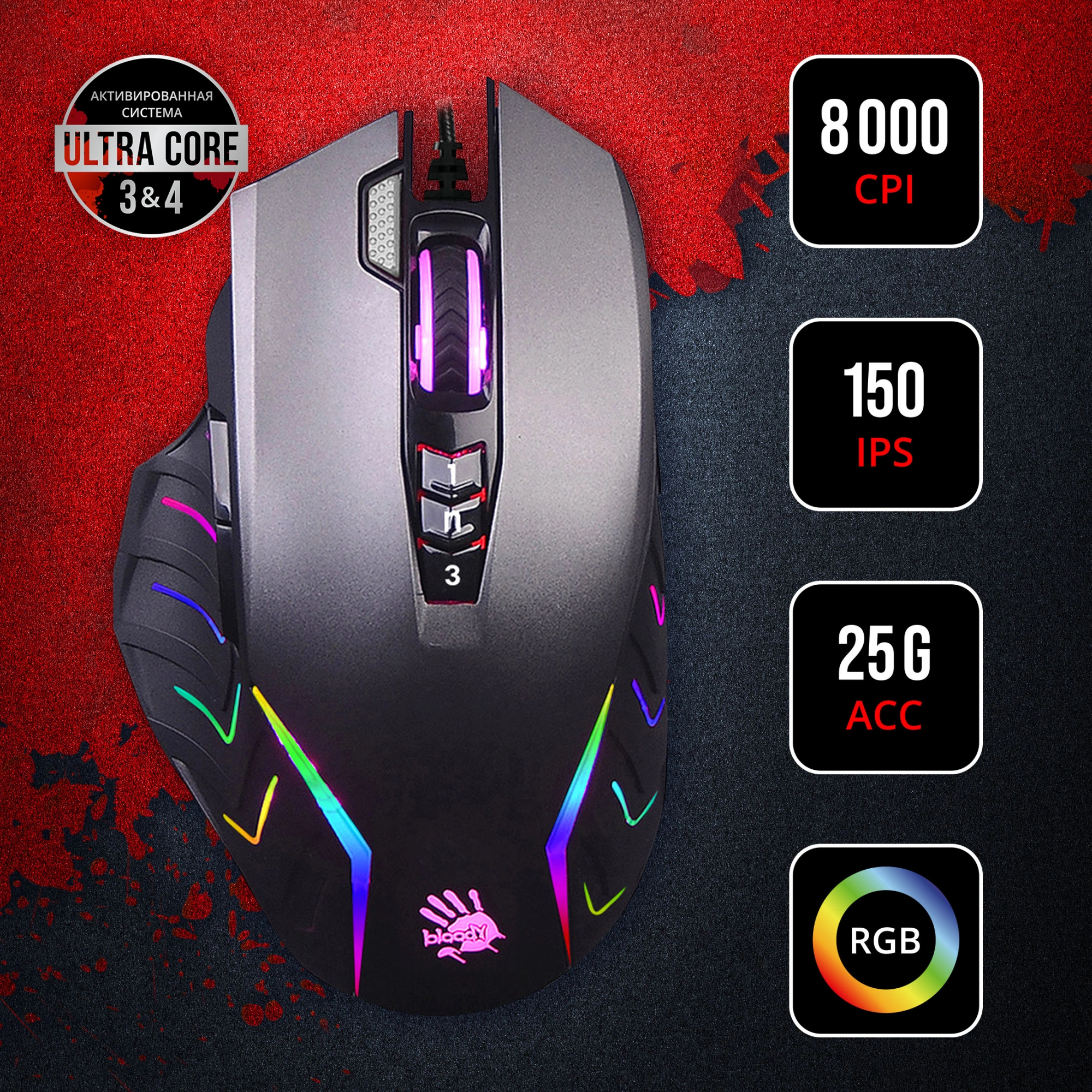 Выбрать товарыМышь A4Tech - Bloody J95s, Проводная, USB, Optical, 9 btns, gaming, цвет серый, J95S GREY