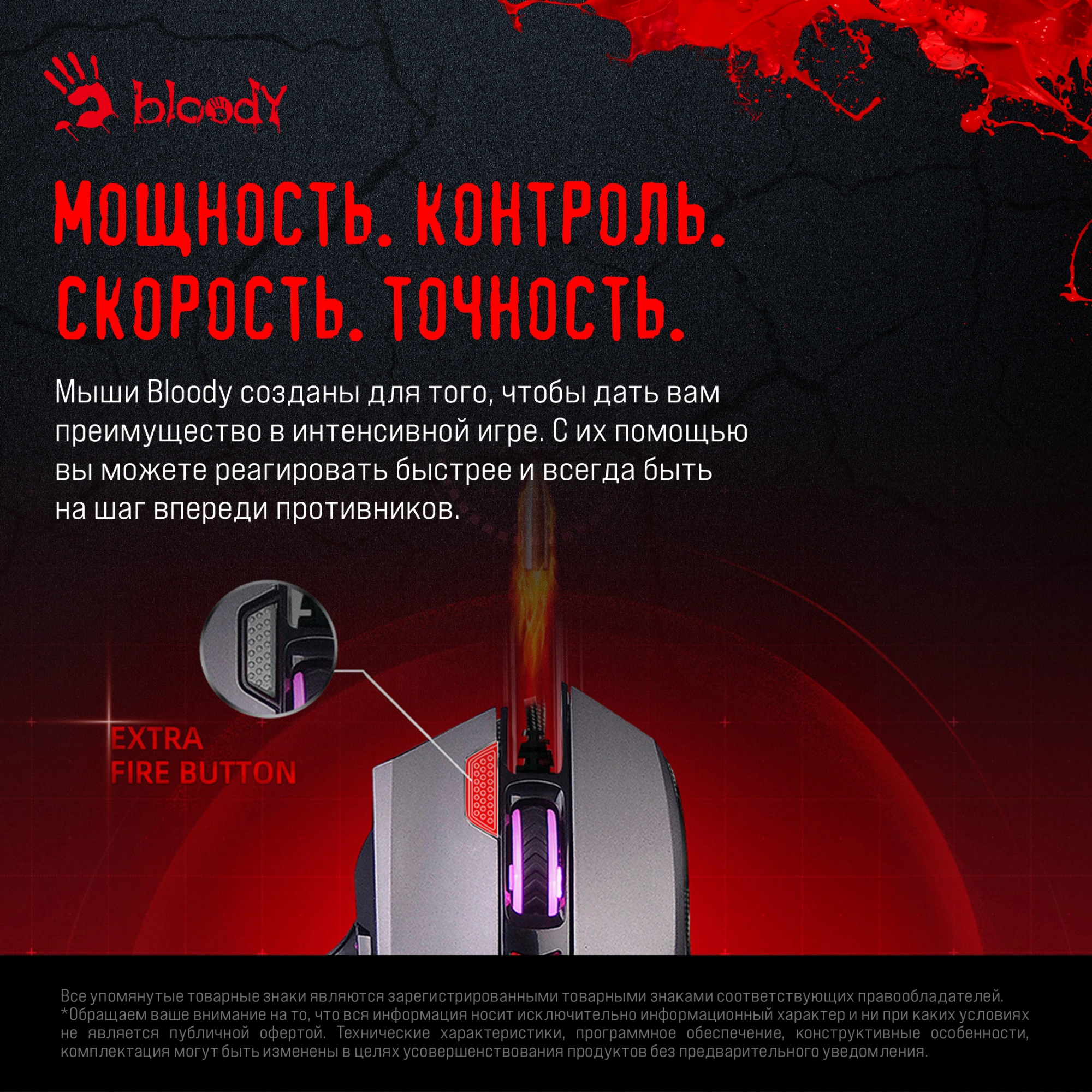 Мышь A4Tech - Bloody J95s, Проводная, USB, Optical, 9 btns, gaming, цвет серый, J95S GREY