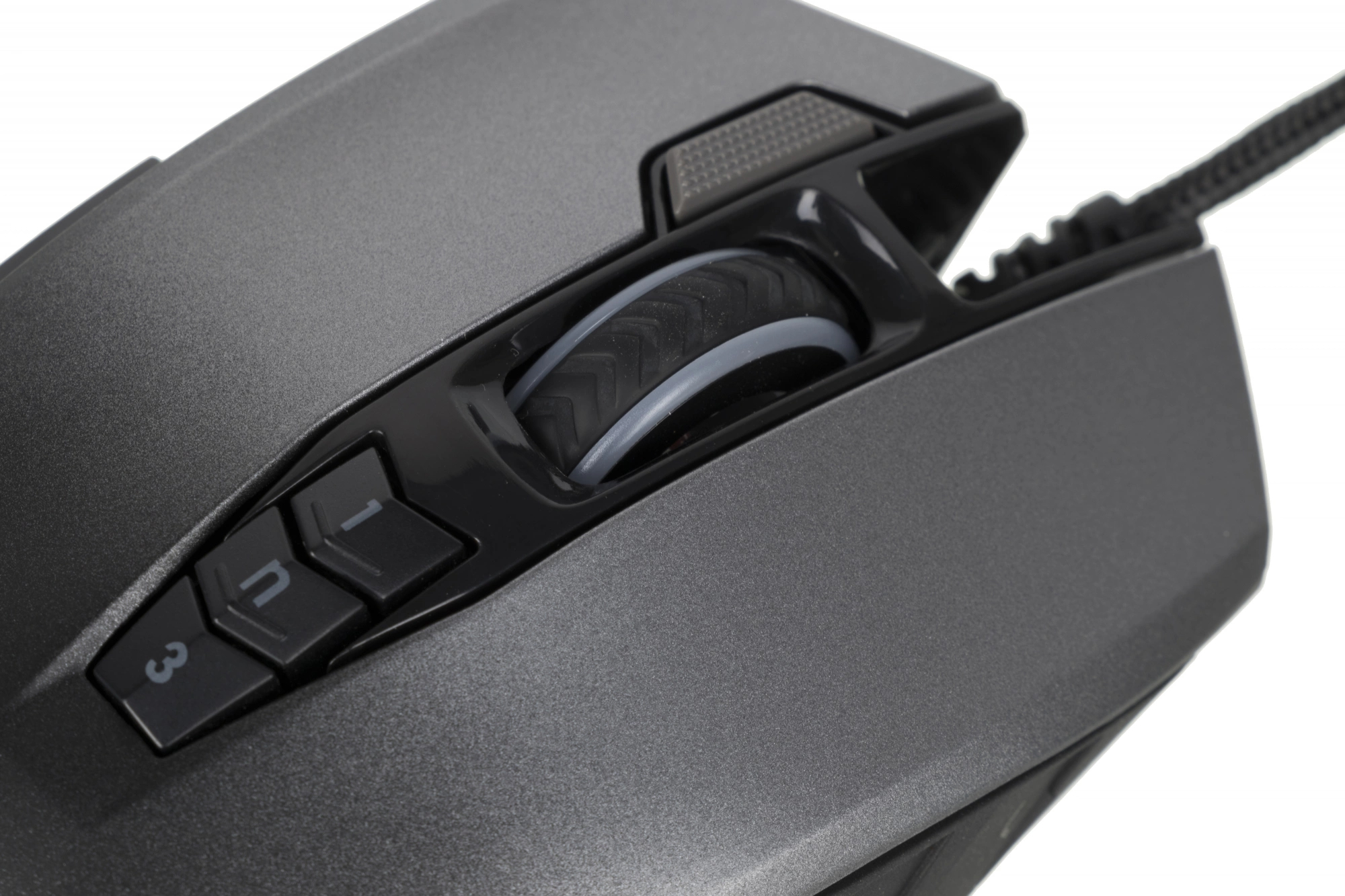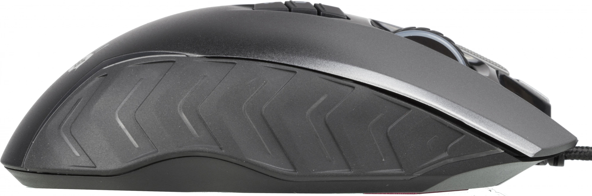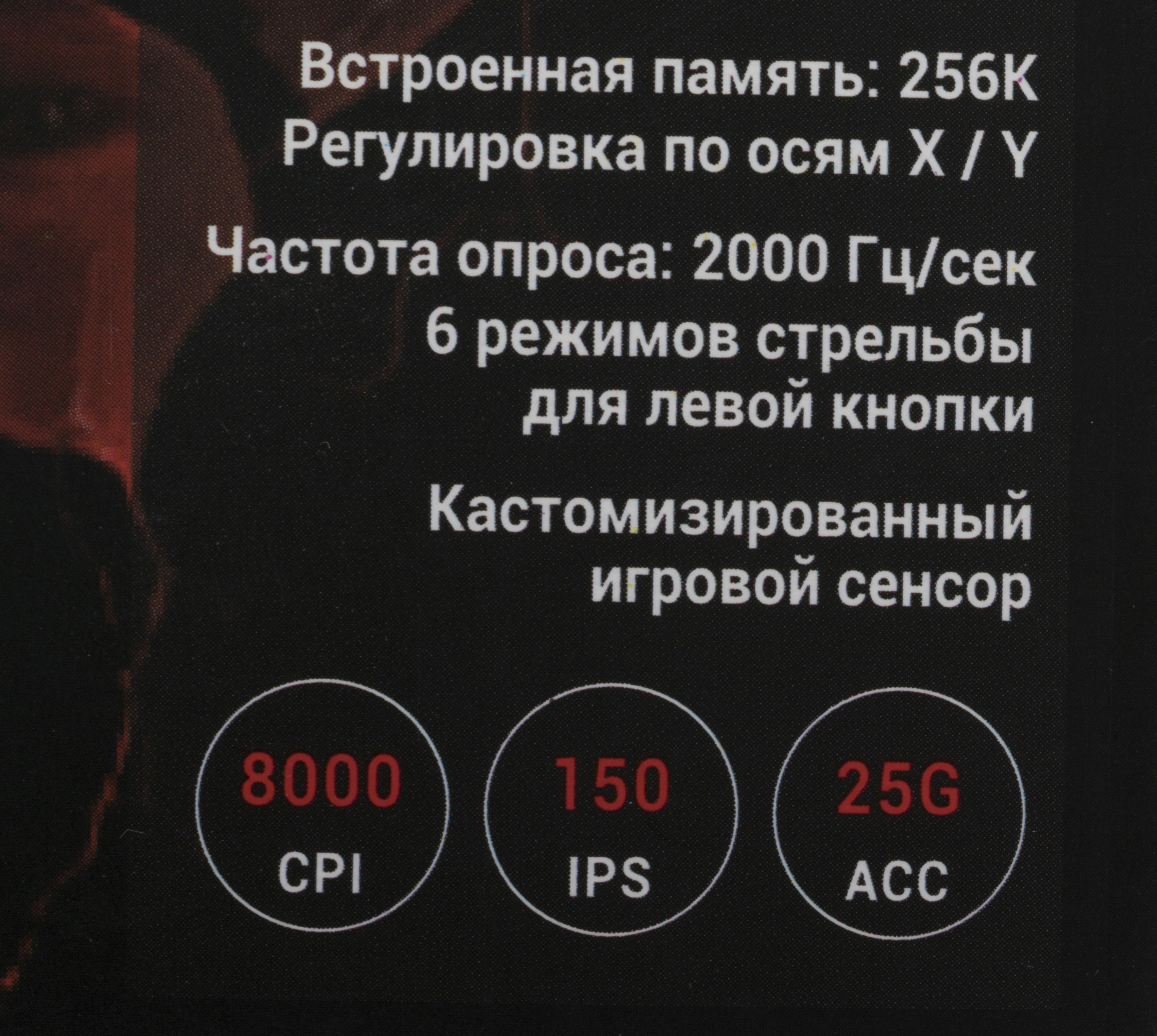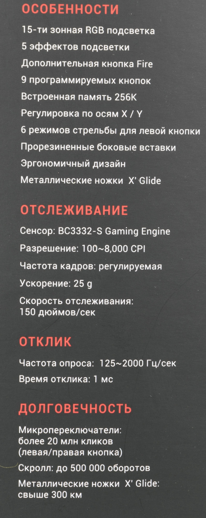 Серый корпус с матовой текстурой. Провод в оплетке. Сенсор 16000 DPI. RGB-подсветка с синхронизацией.