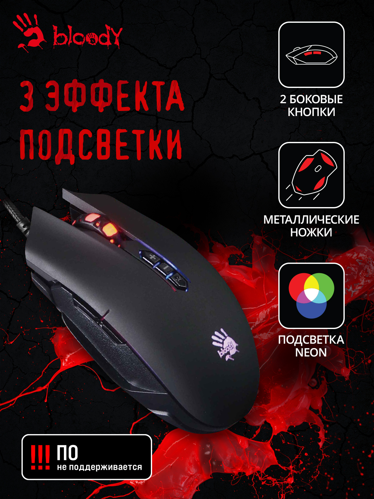 Выбрать товарыМышь A4Tech - Bloody Q80, Проводная, USB, Optical, 8 btns, gaming, цвет чёрный, Q80 BLACK