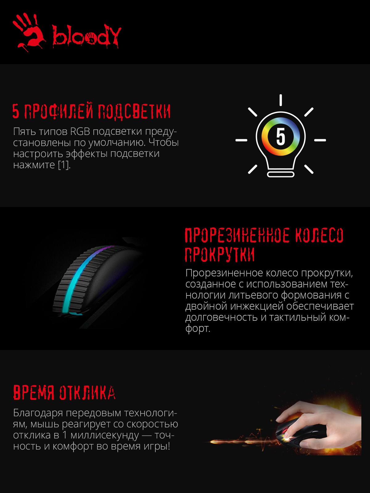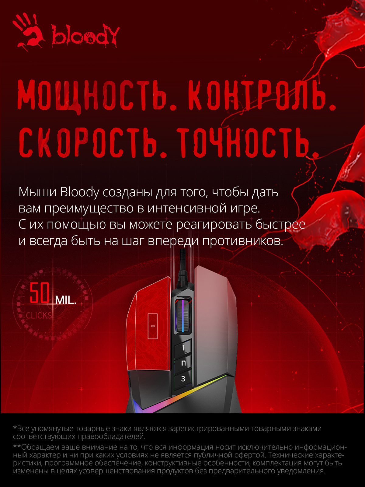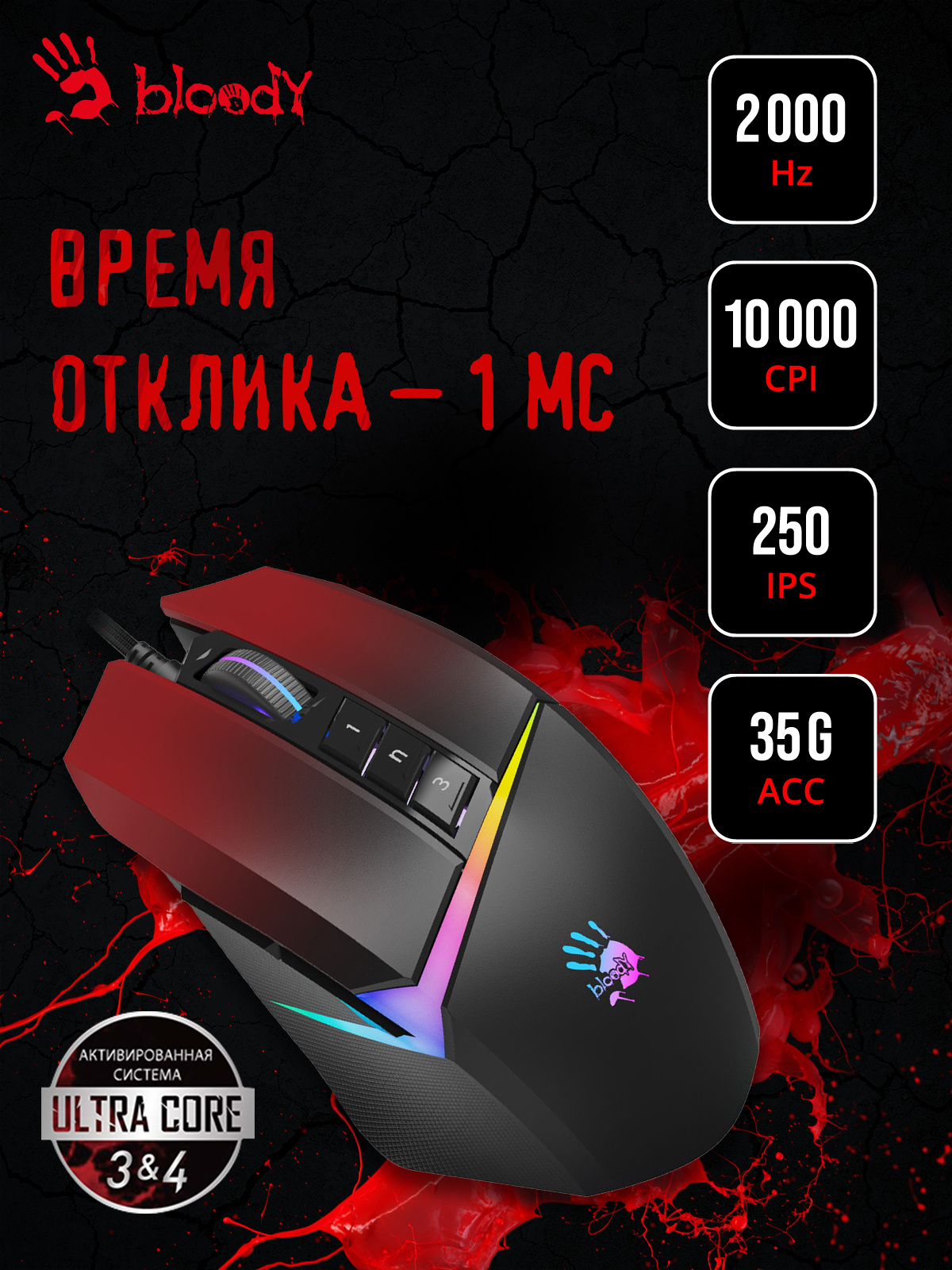 Мышь A4Tech - Bloody W60 Max, Проводная, USB, Optical, 10 btns, gaming, цвет красный, W60 MAX
