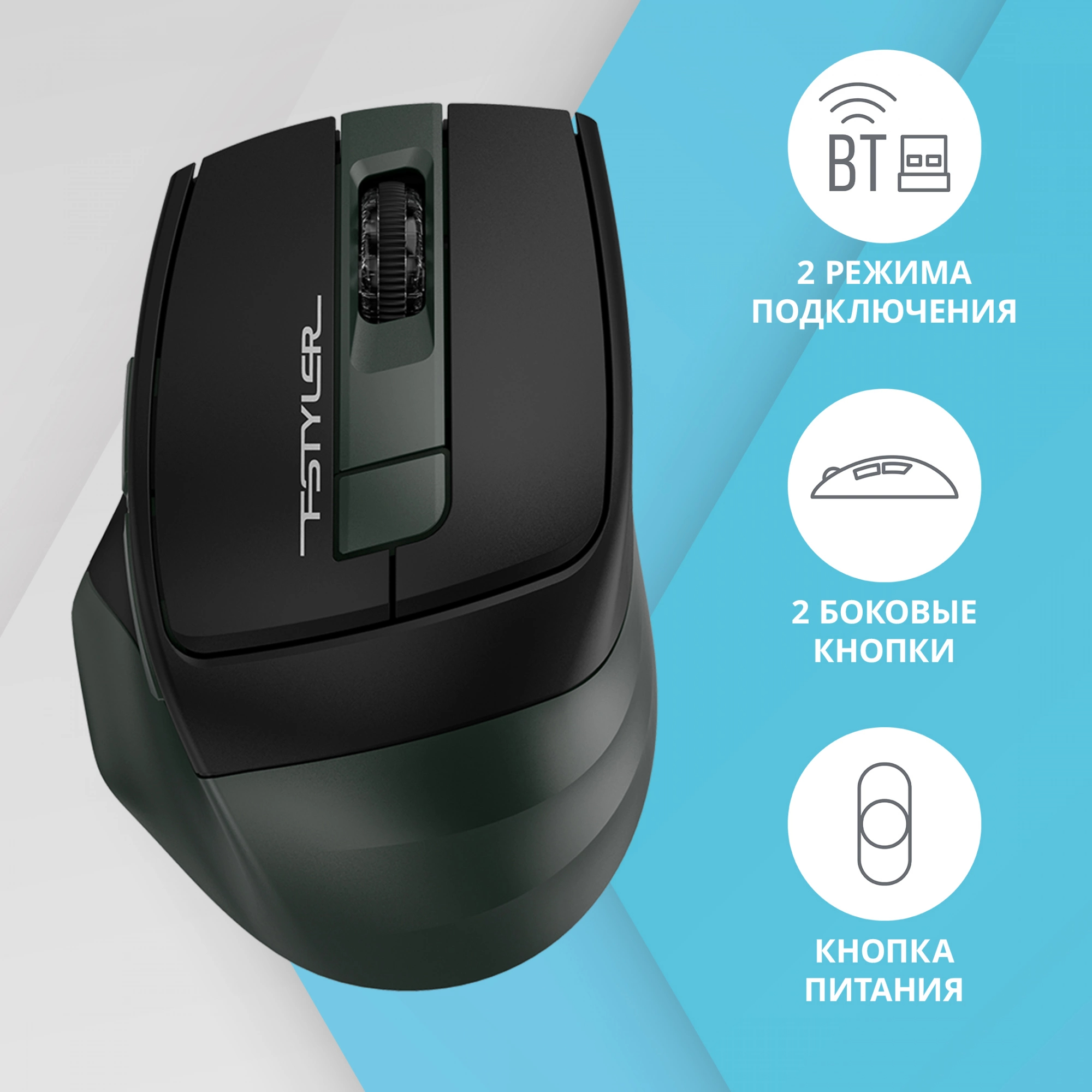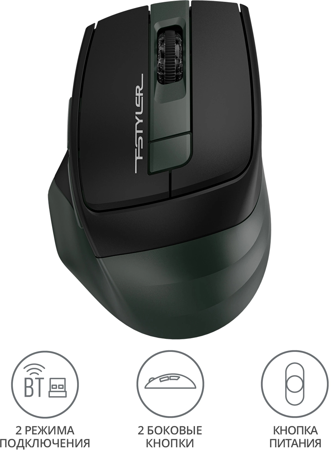 Мышь A4Tech - FB35, Беспроводная, Optical, 2000 dpi, 6 btns, цвет чёрный, FB35 MIDLIGHT GREEN