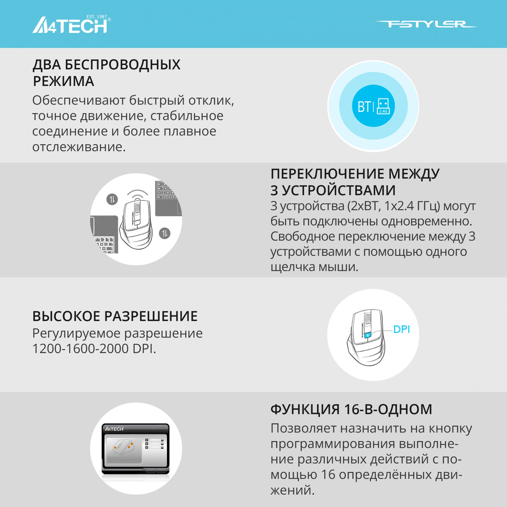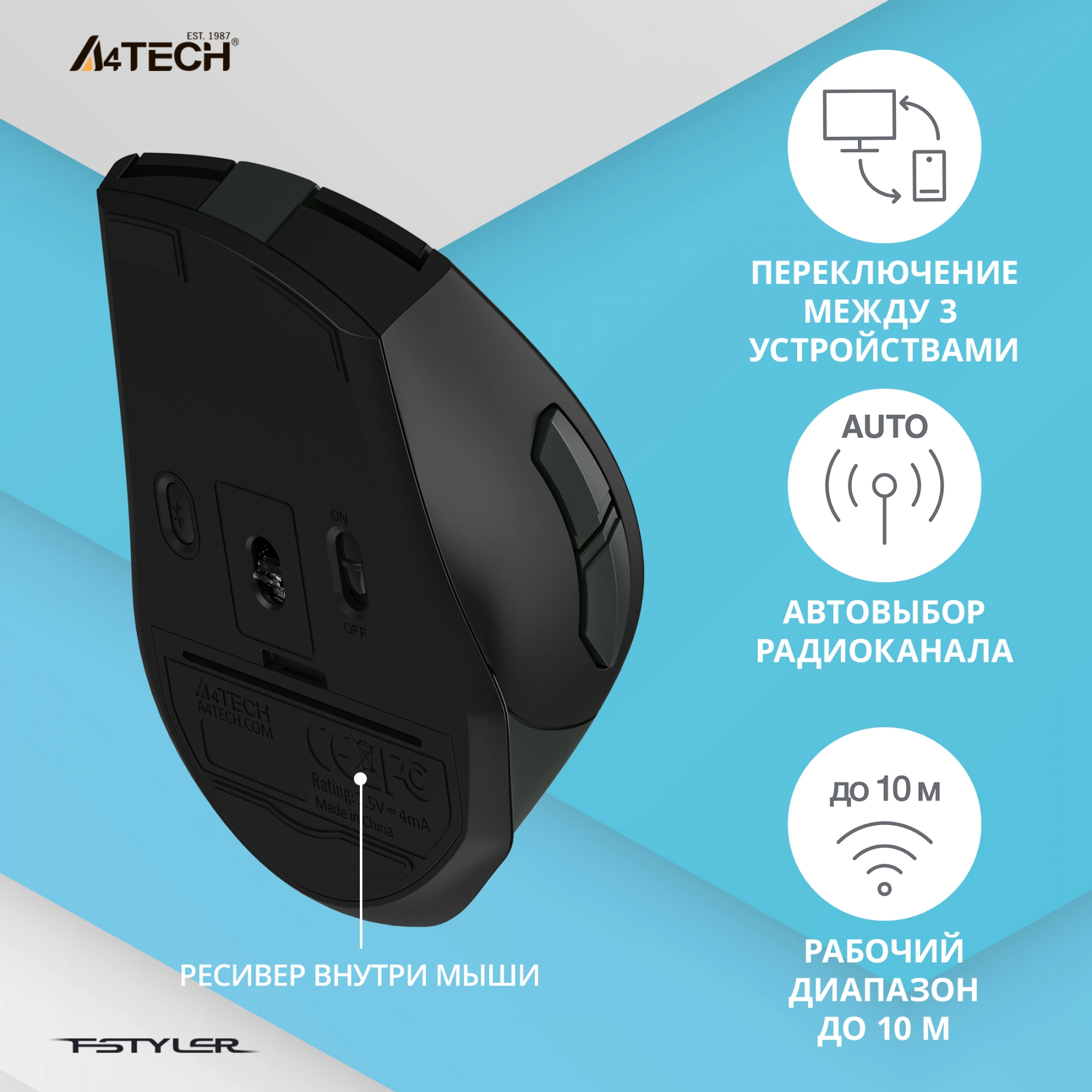 Выбрать товарыМышь A4Tech - FB35, Беспроводная, Optical, 2000 dpi, 6 btns, цвет чёрный, FB35 MIDLIGHT GREEN