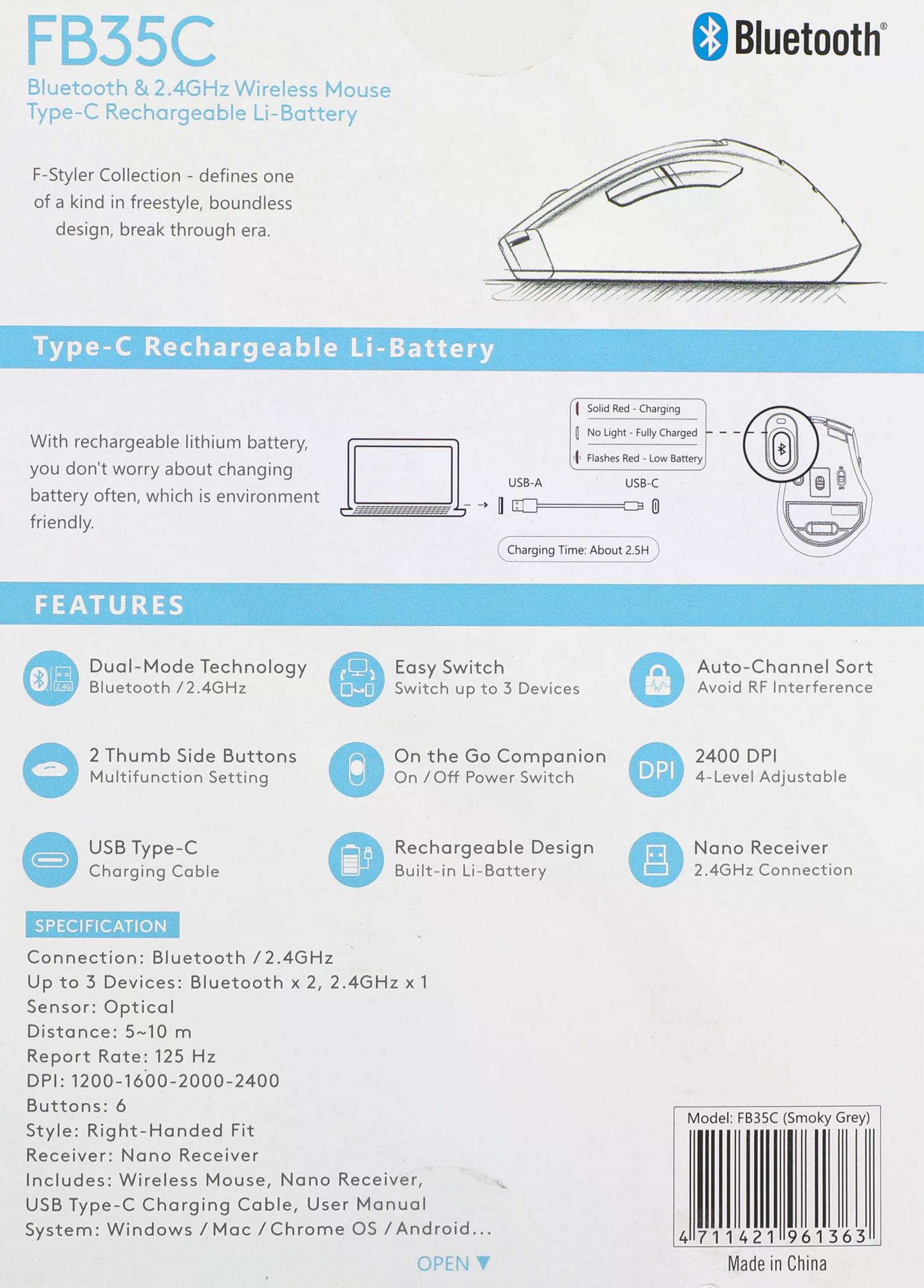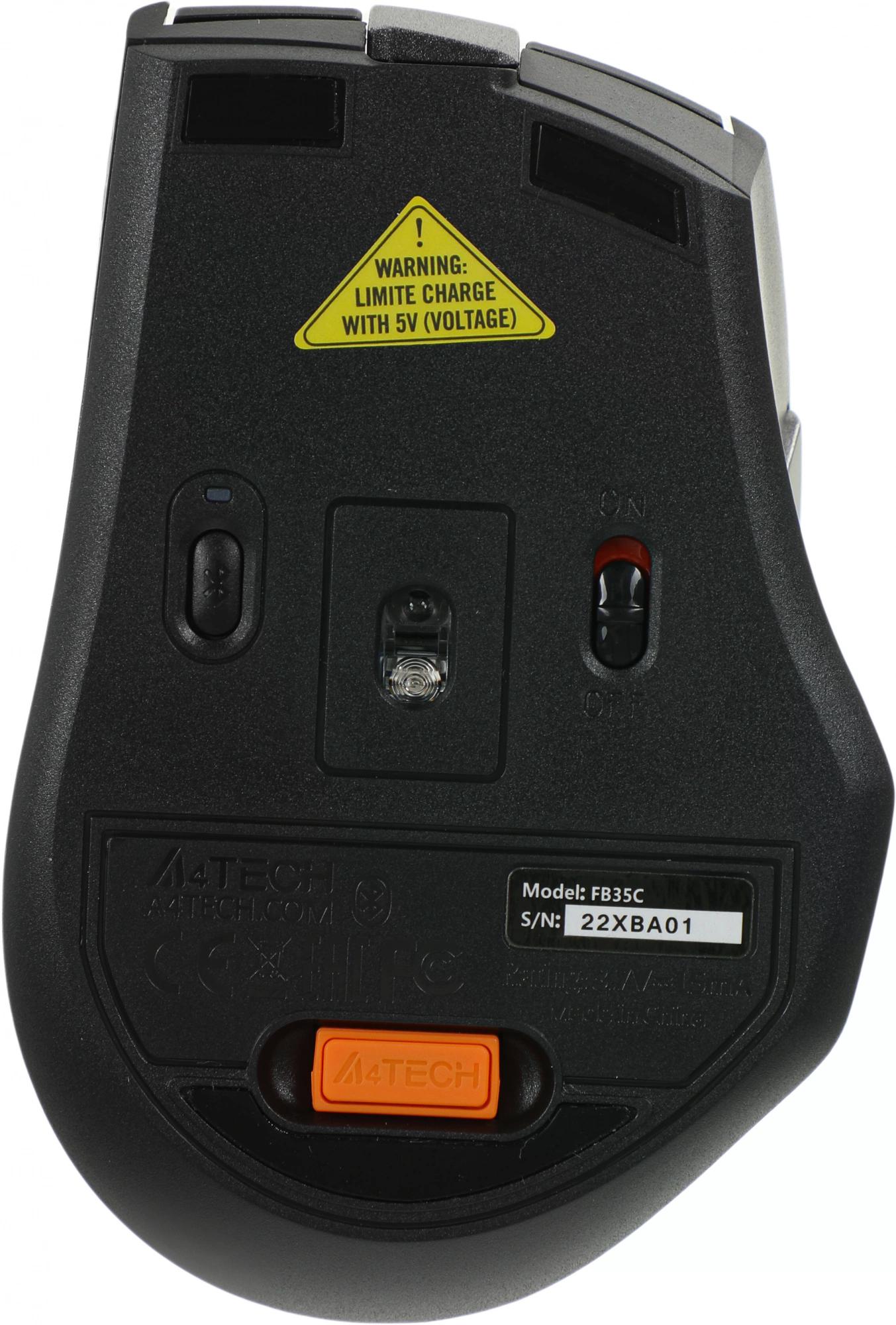 Мышь A4Tech - FB35C, Беспроводная, 10 метров, USB, Optical, 1200 - 2000 dpi, 6 btns, цвет серый, FB35C SMOKY GREY