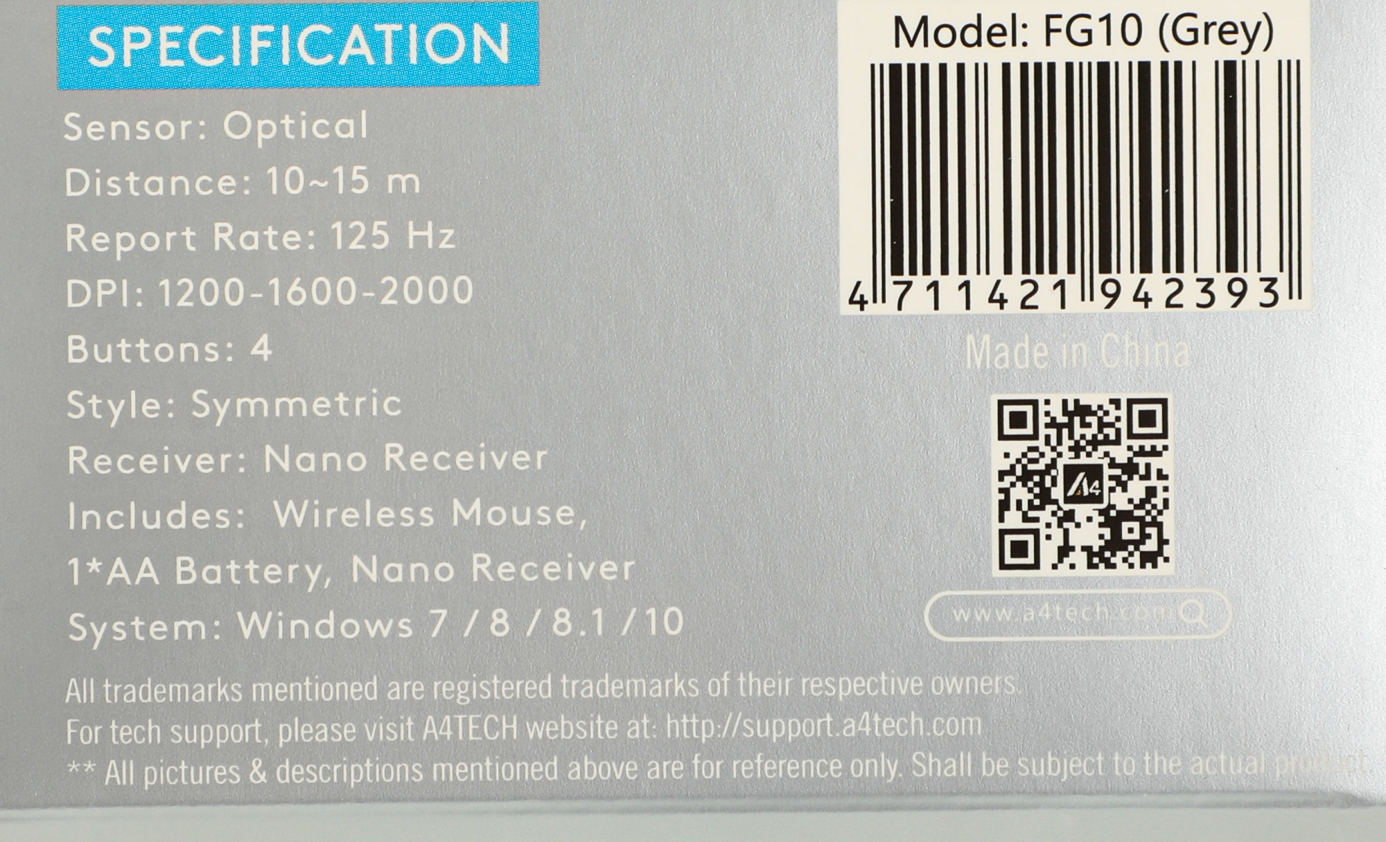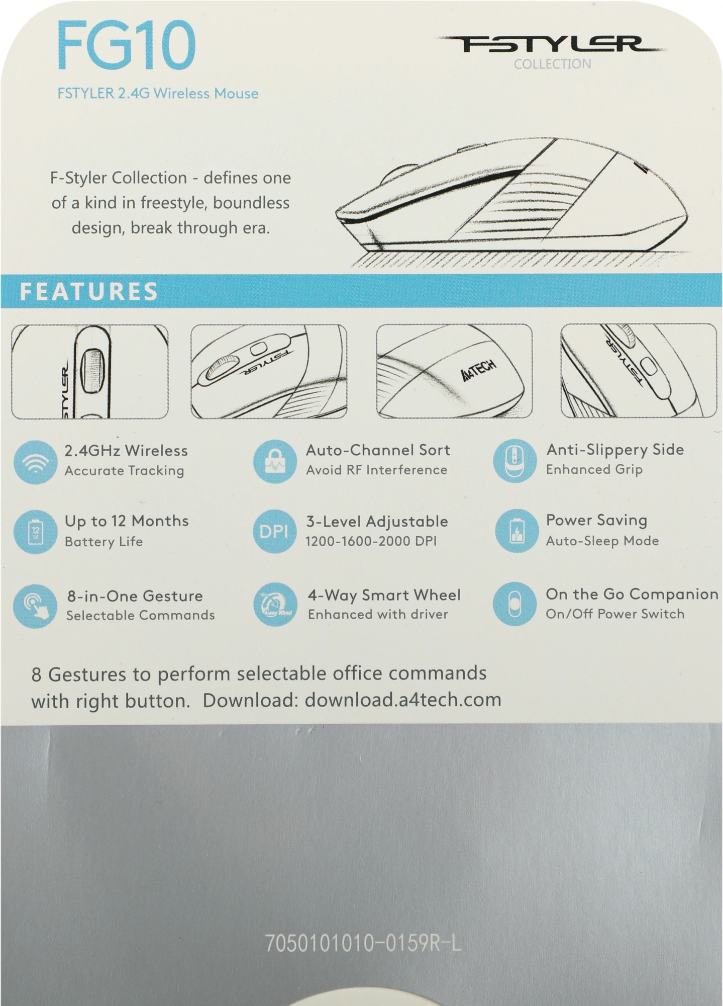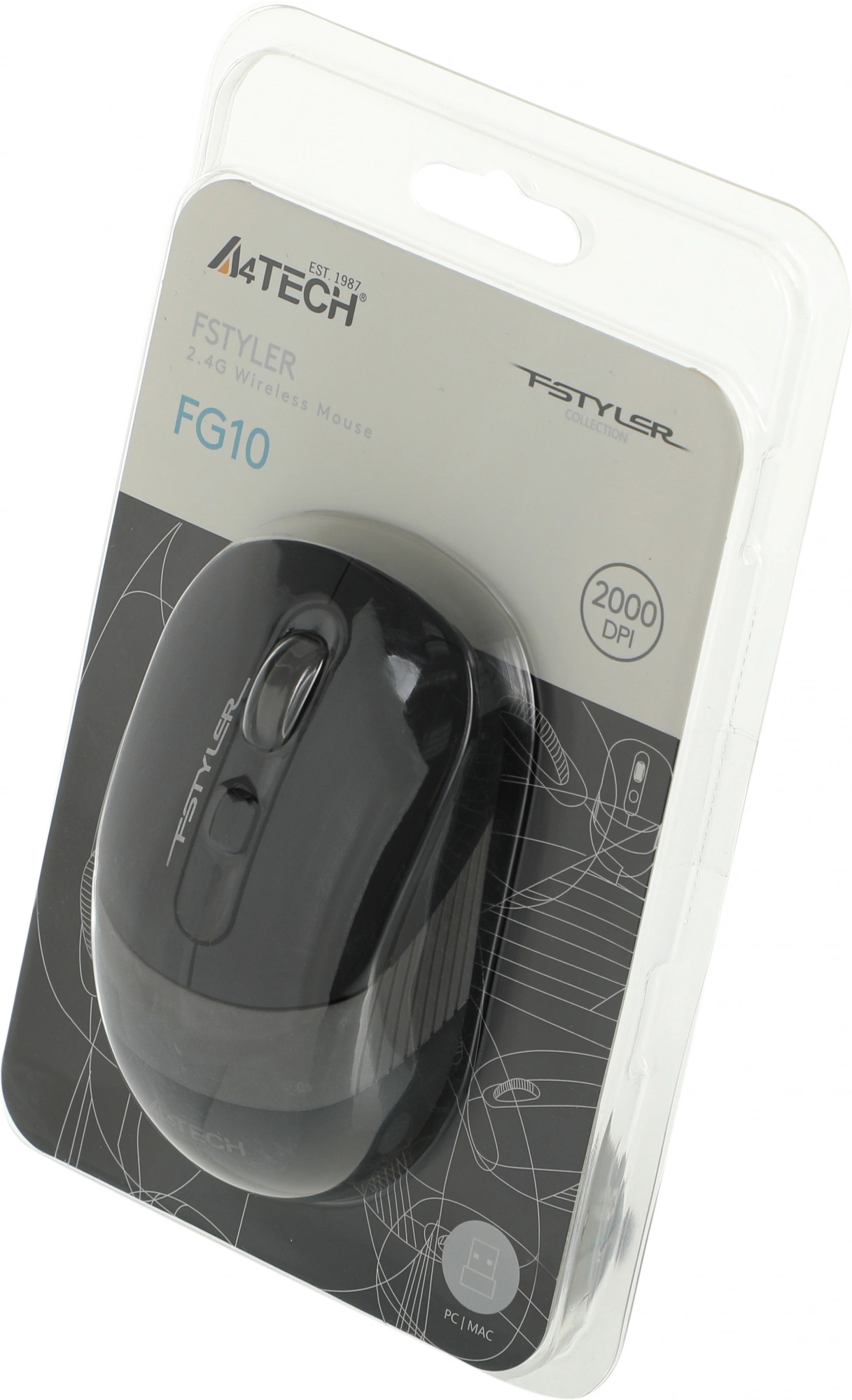 Мышь A4Tech - FG10, Беспроводная, Optical, 2000 dpi, 4 btns, цвет серый, FG10 GREY