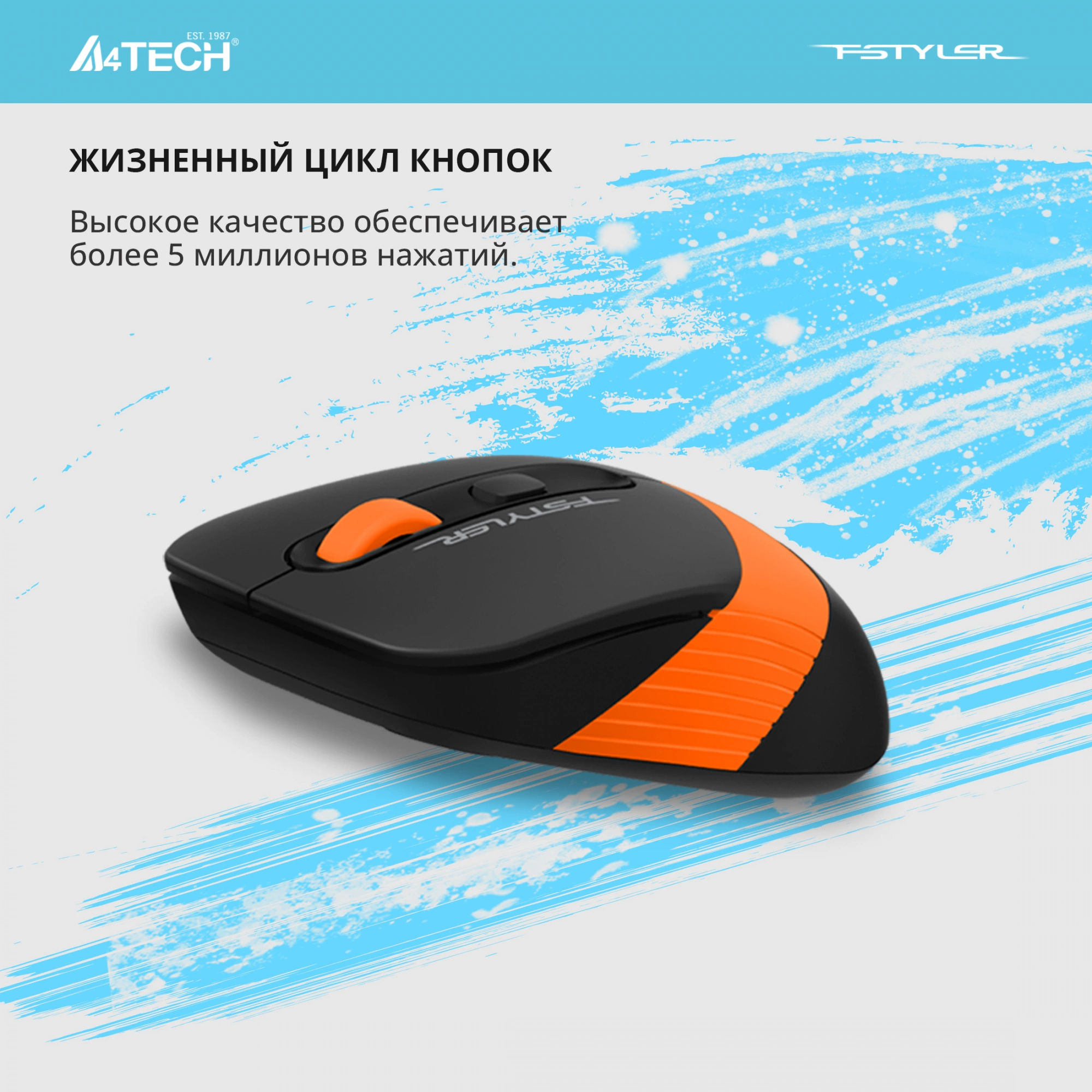 Мышь A4Tech - FG10, Беспроводная, Optical, 2000 dpi, 4 btns, цвет чёрный, FG10 ORANGE