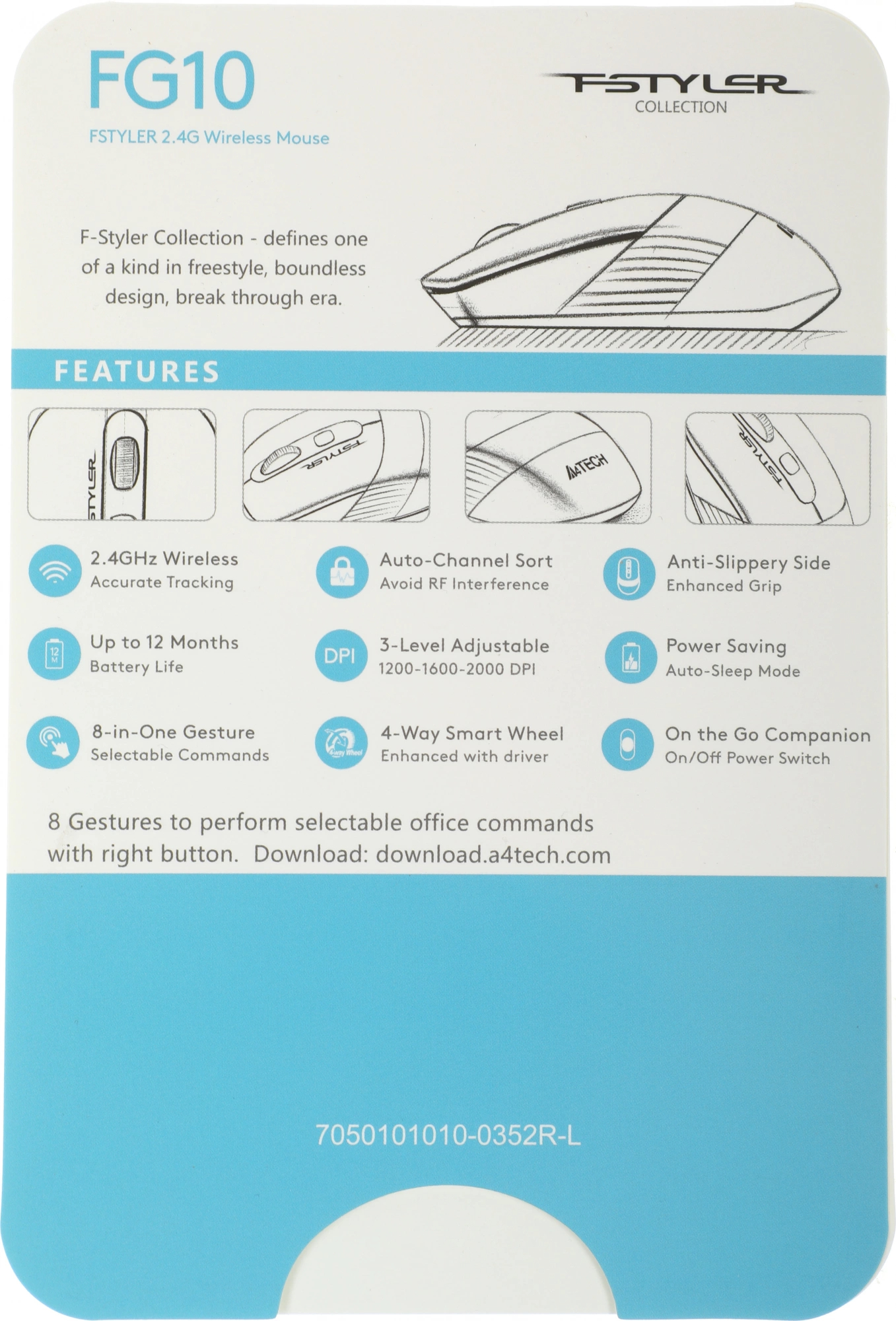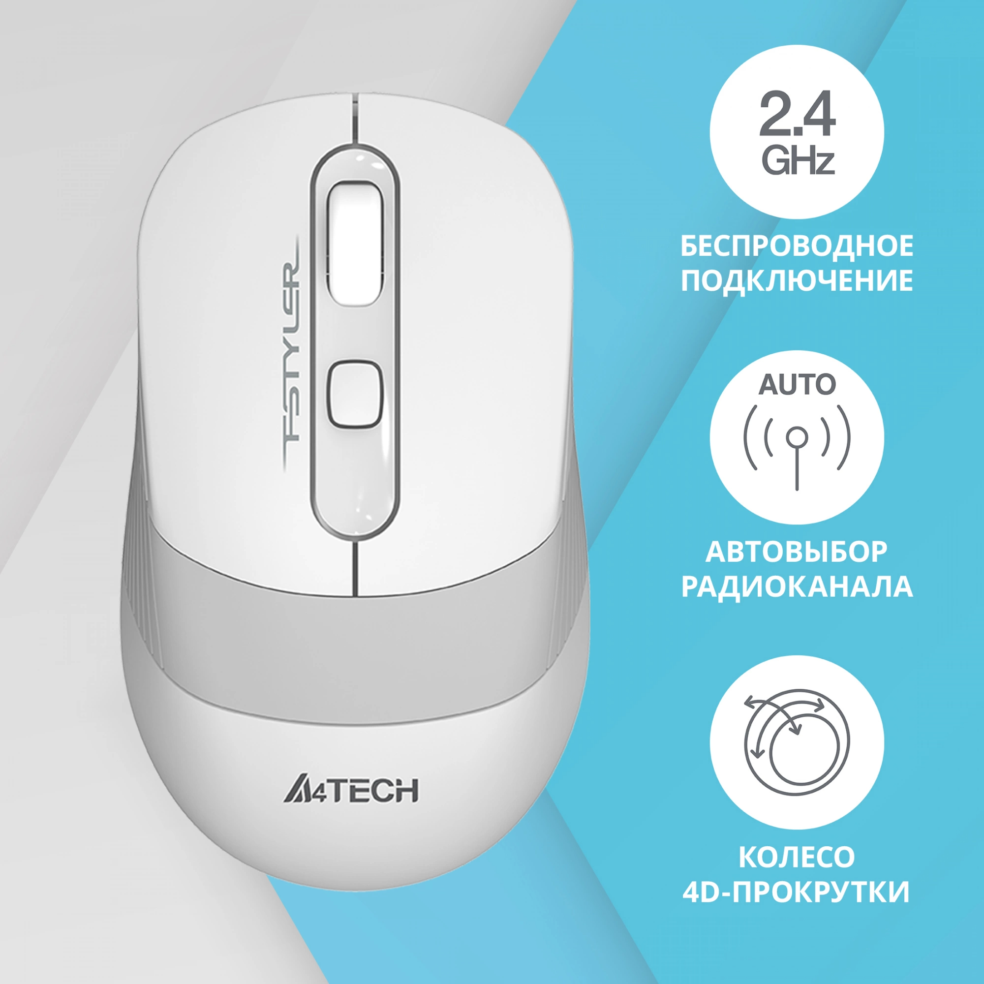 Мышь A4Tech - FG10, Беспроводная, Optical, 2000 dpi, 3 btns, цвет белый, FG10 WHITE