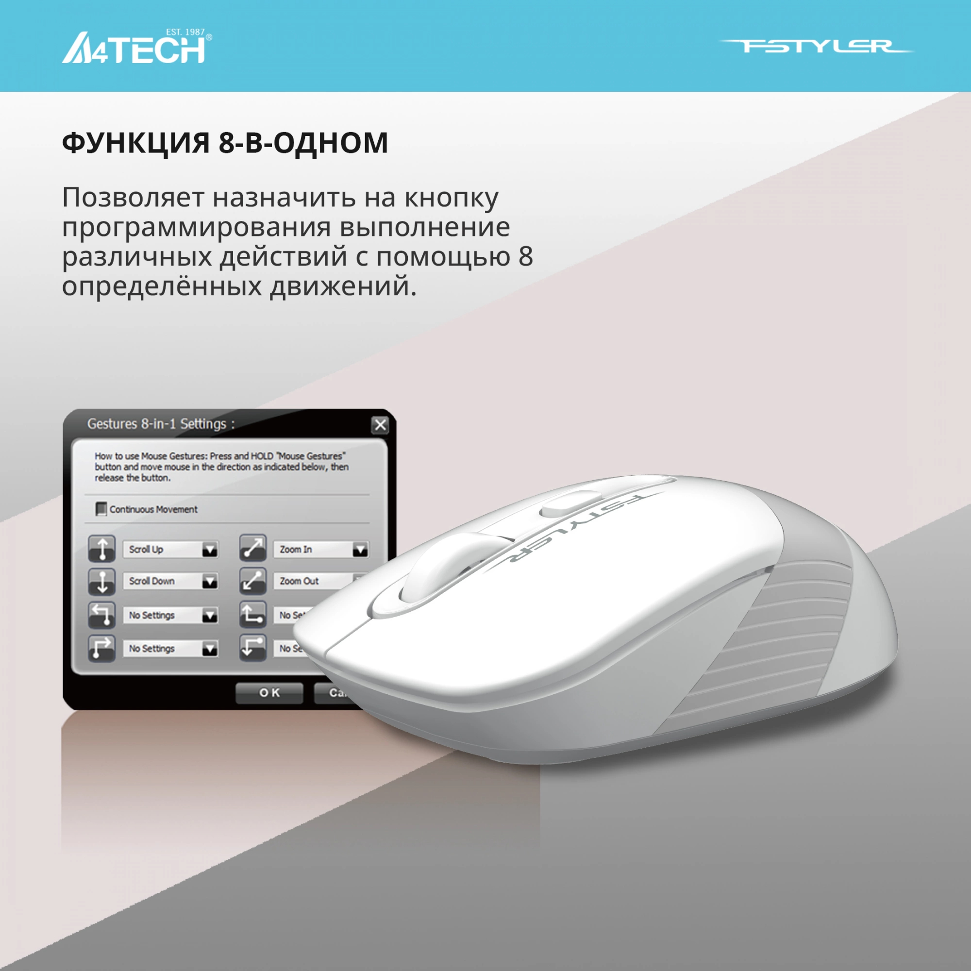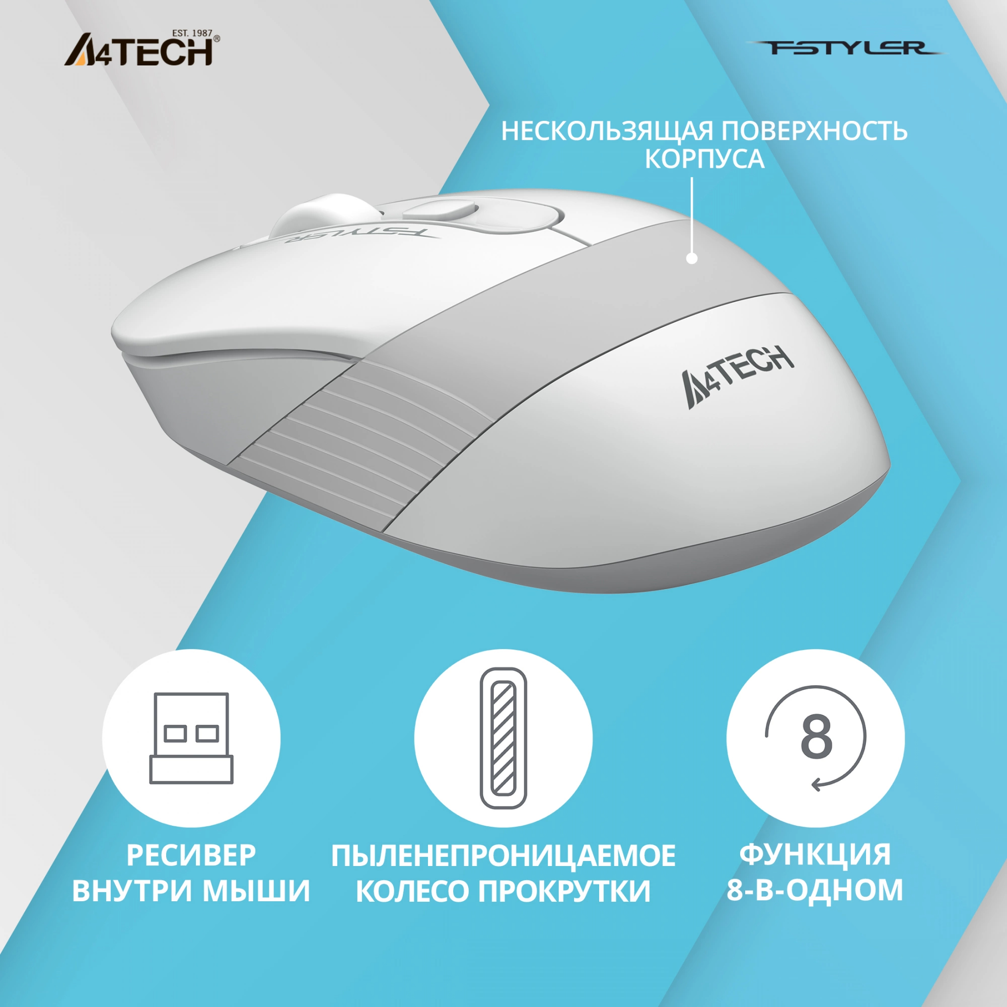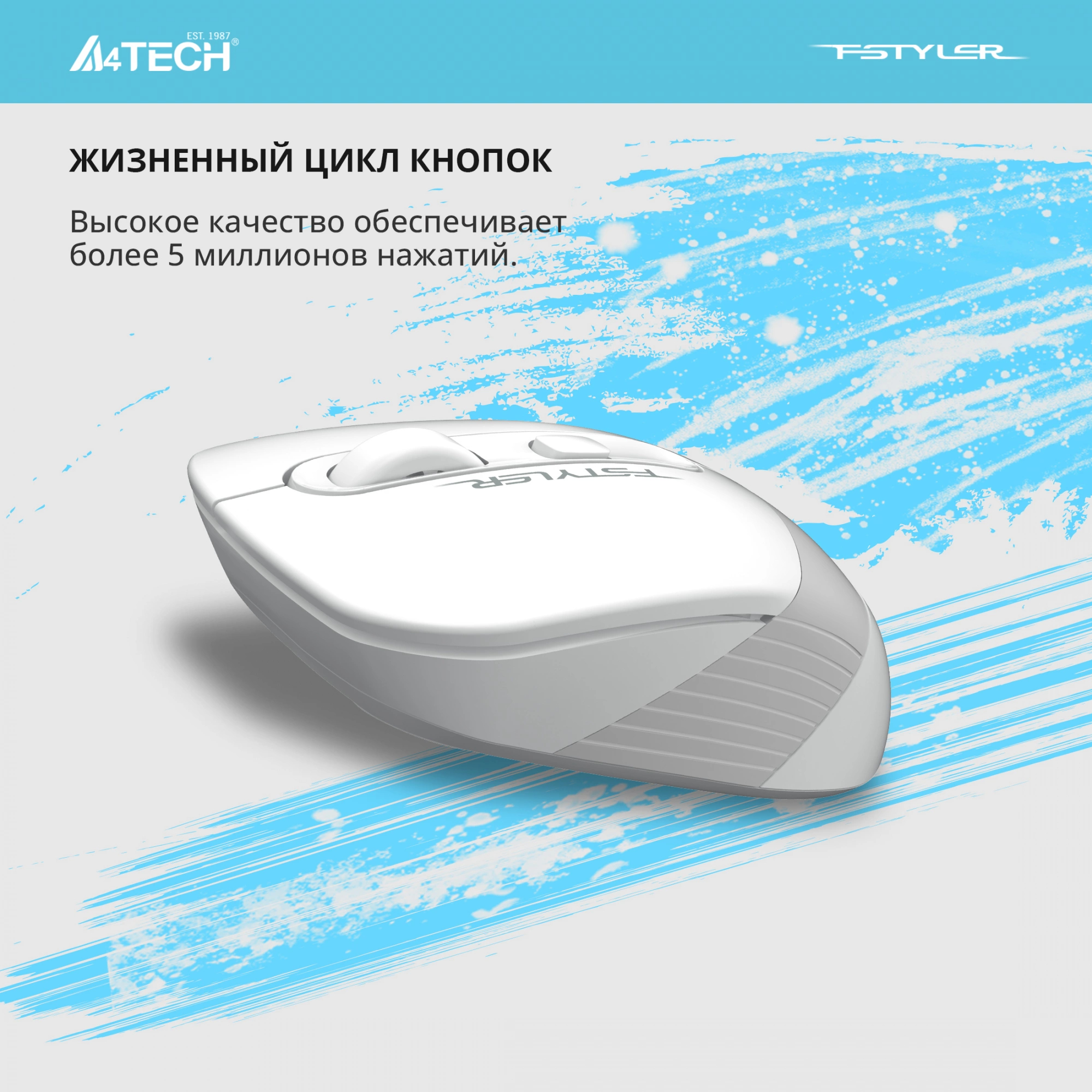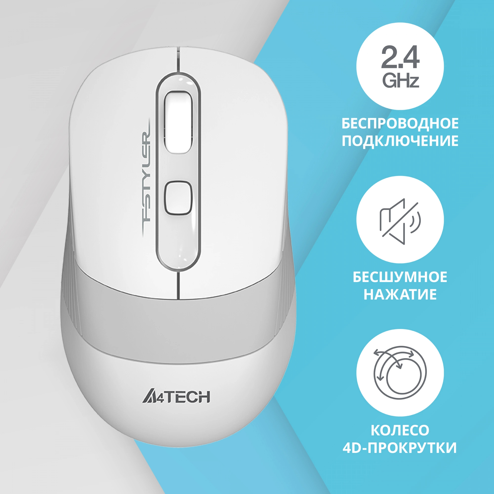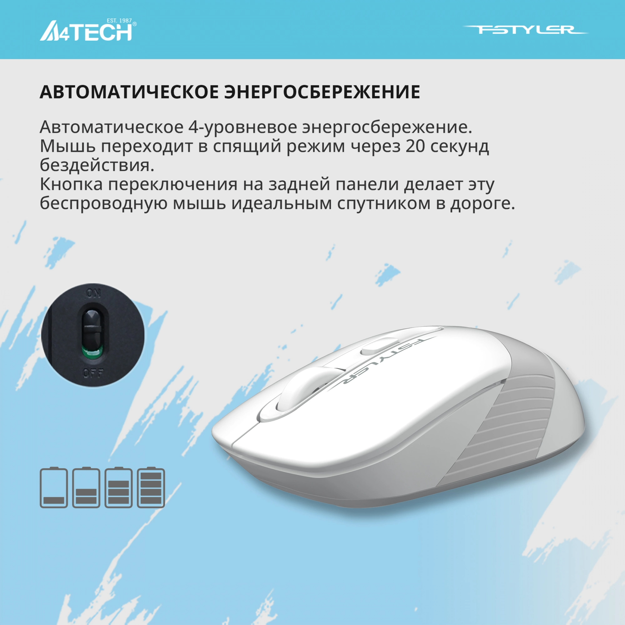 Мышь A4Tech - FG10S, Беспроводная, Optical, 2000 dpi, 4 btns, цвет белый, FG10S WHITE