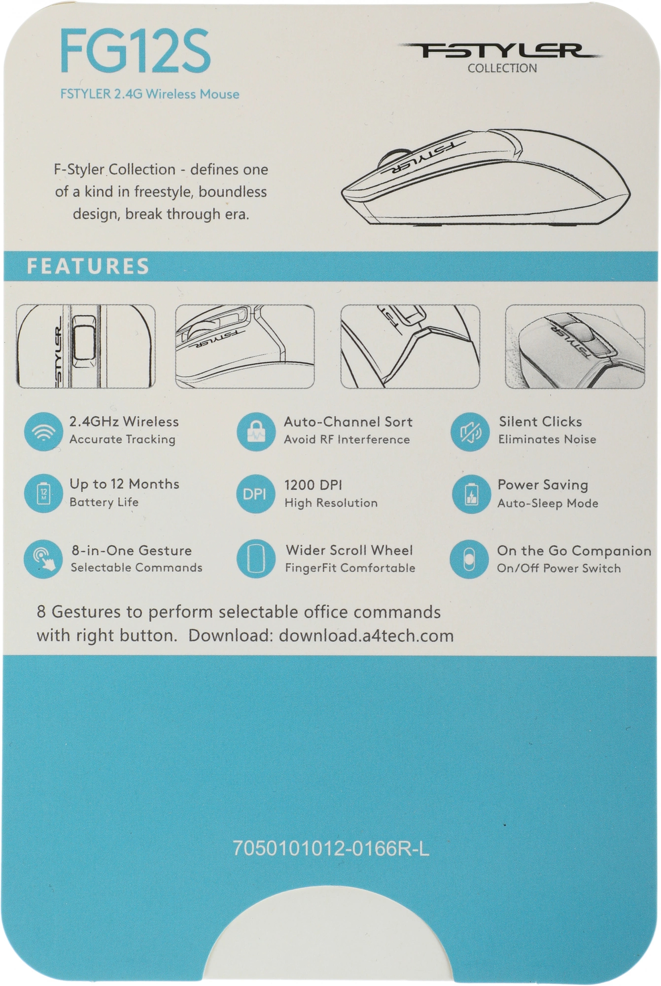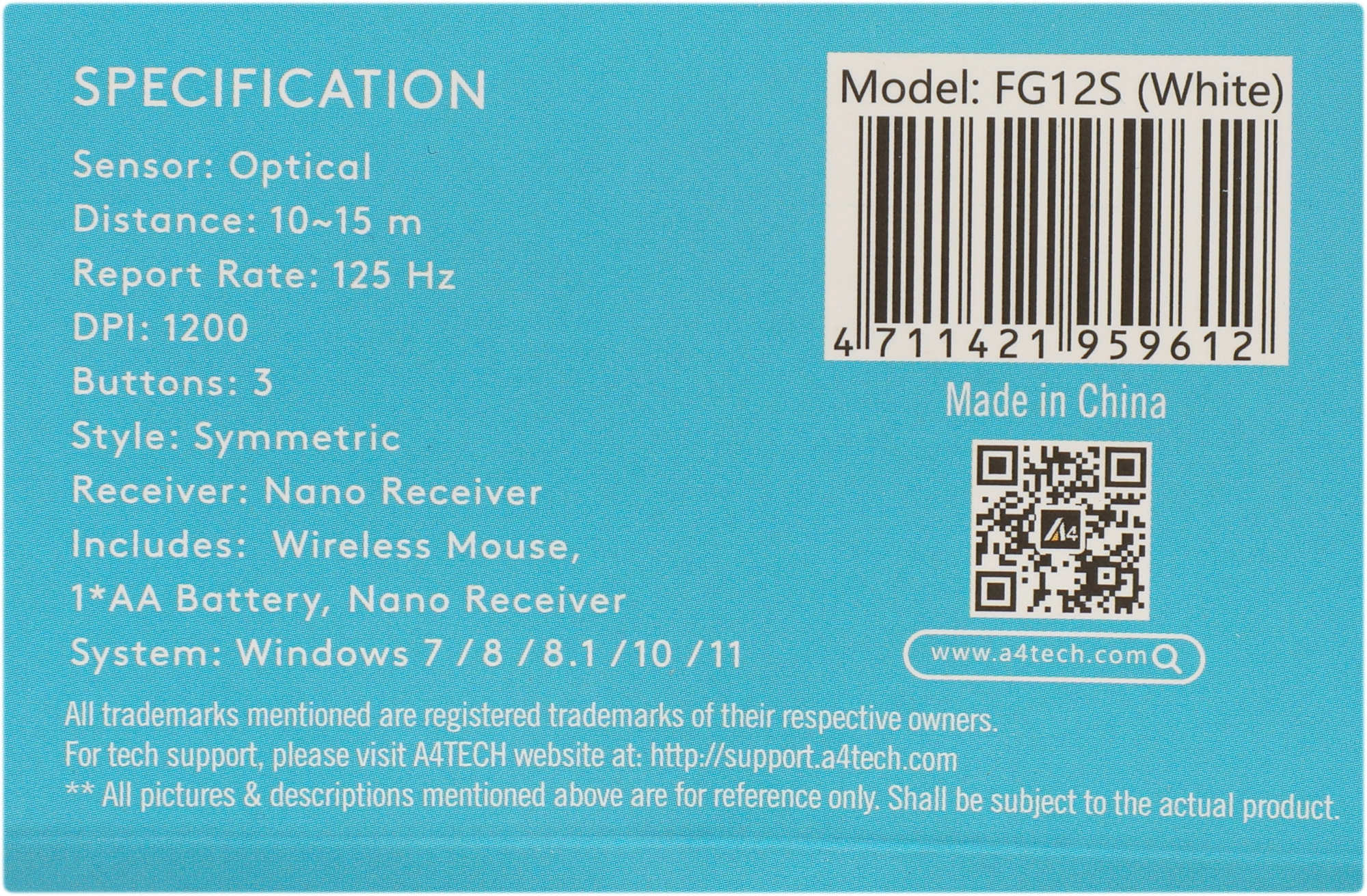 Мышь A4Tech - FG12S, Беспроводная, Optical, 1200 dpi, 3 btns, цвет белый, FG12S