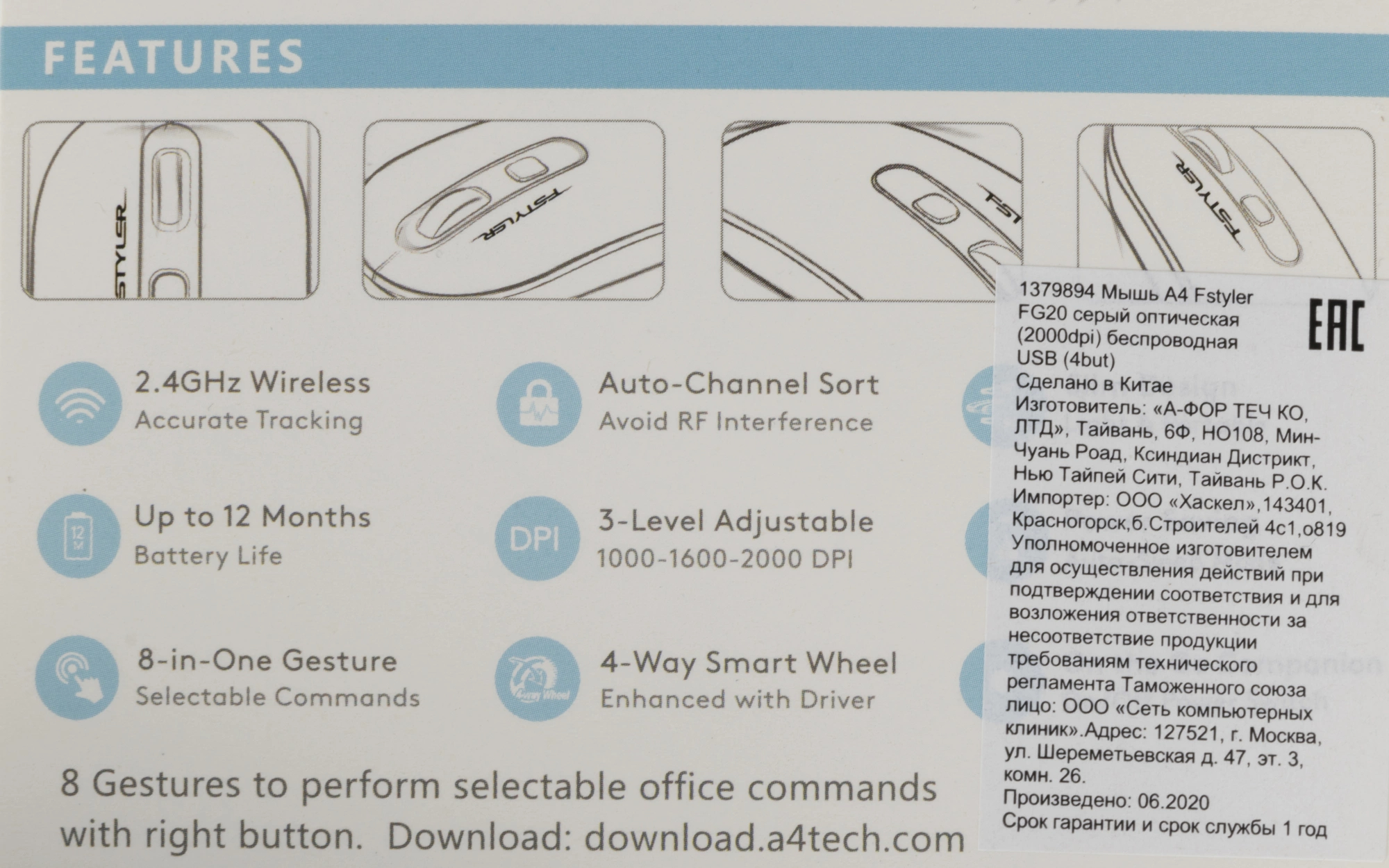 Выбрать товарыМышь A4Tech - FG20, Беспроводная, Optical, 2000 dpi, 4 btns, цвет серый, FG20 GREY