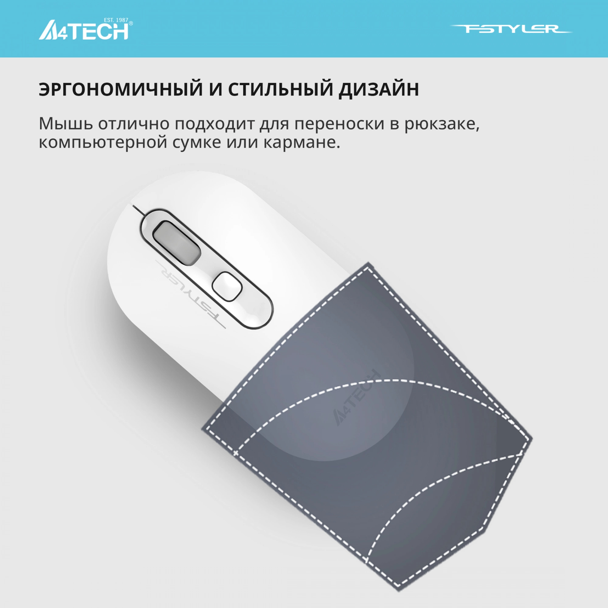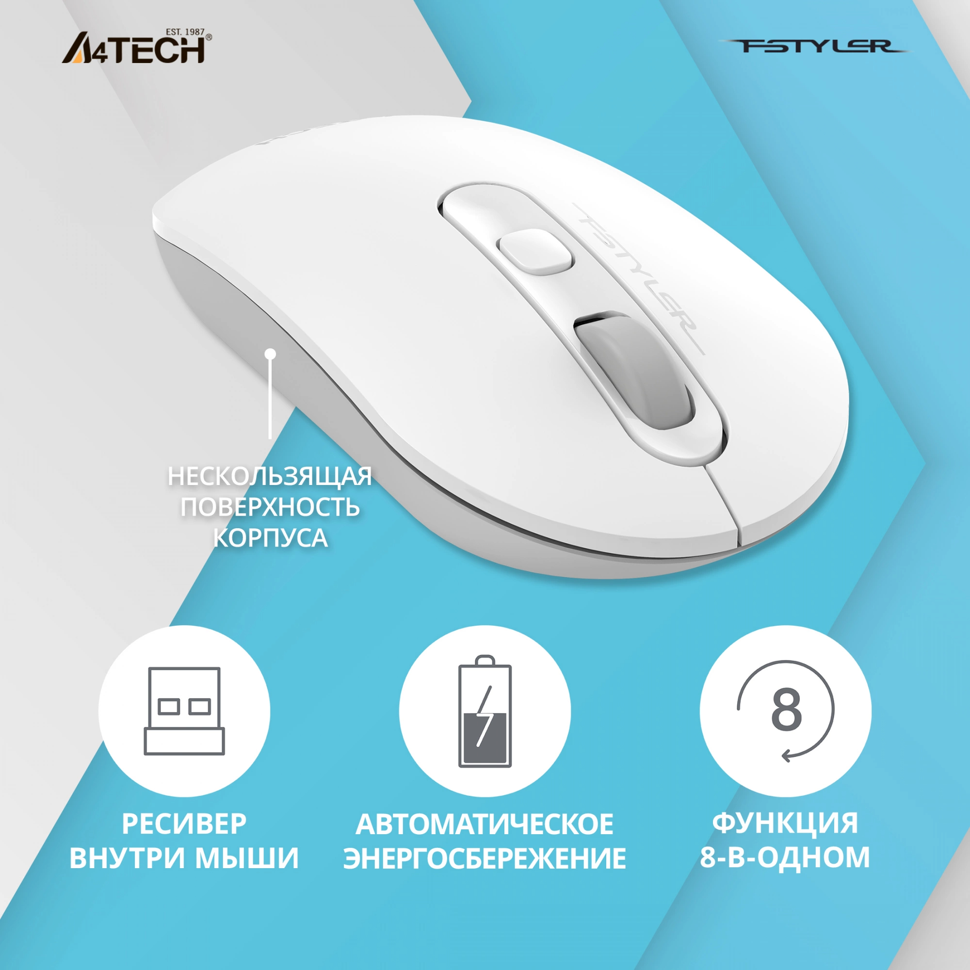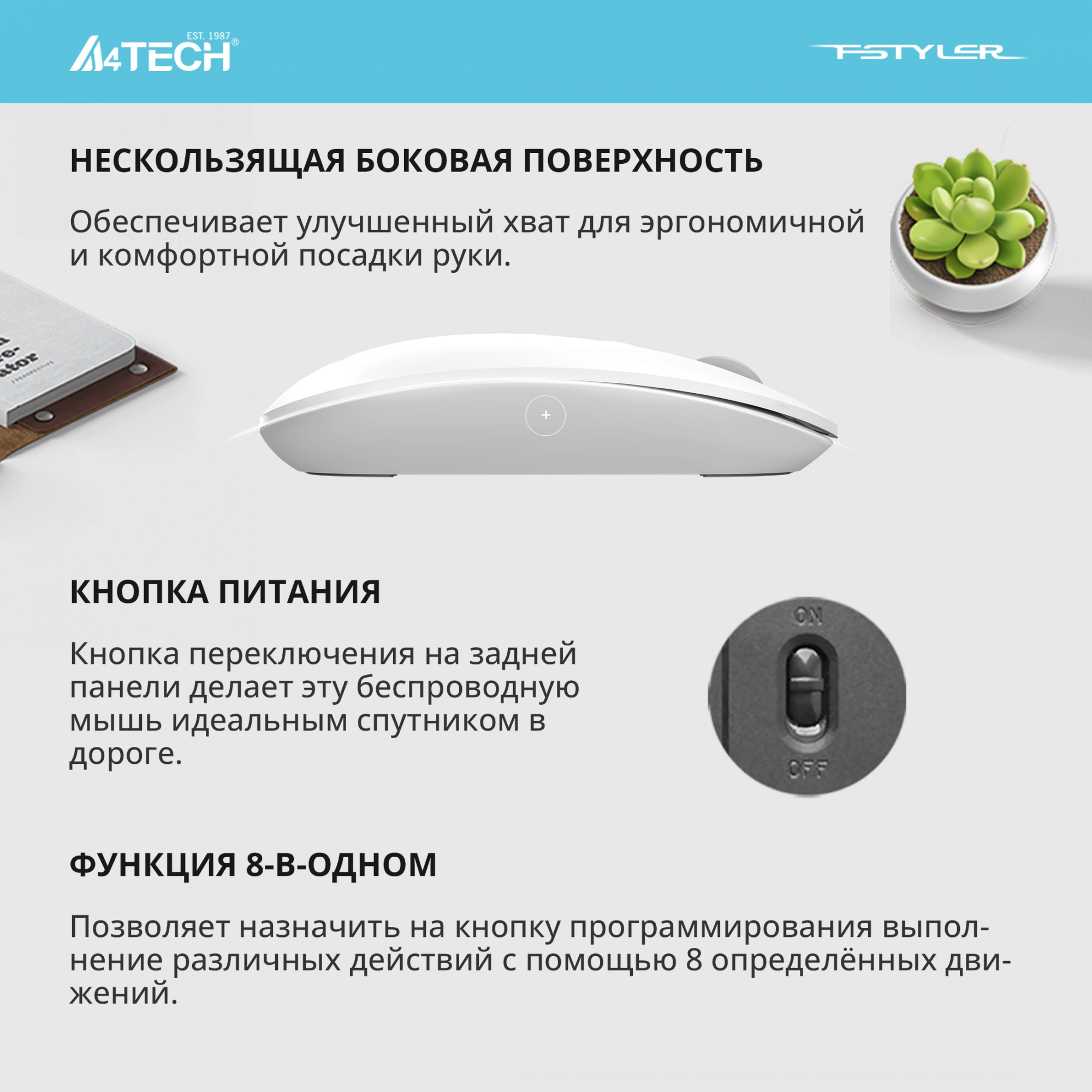 Мышь A4Tech - FG20, Беспроводная, Optical, 2000 dpi, 4 btns, цвет белый, FG20 WHITE