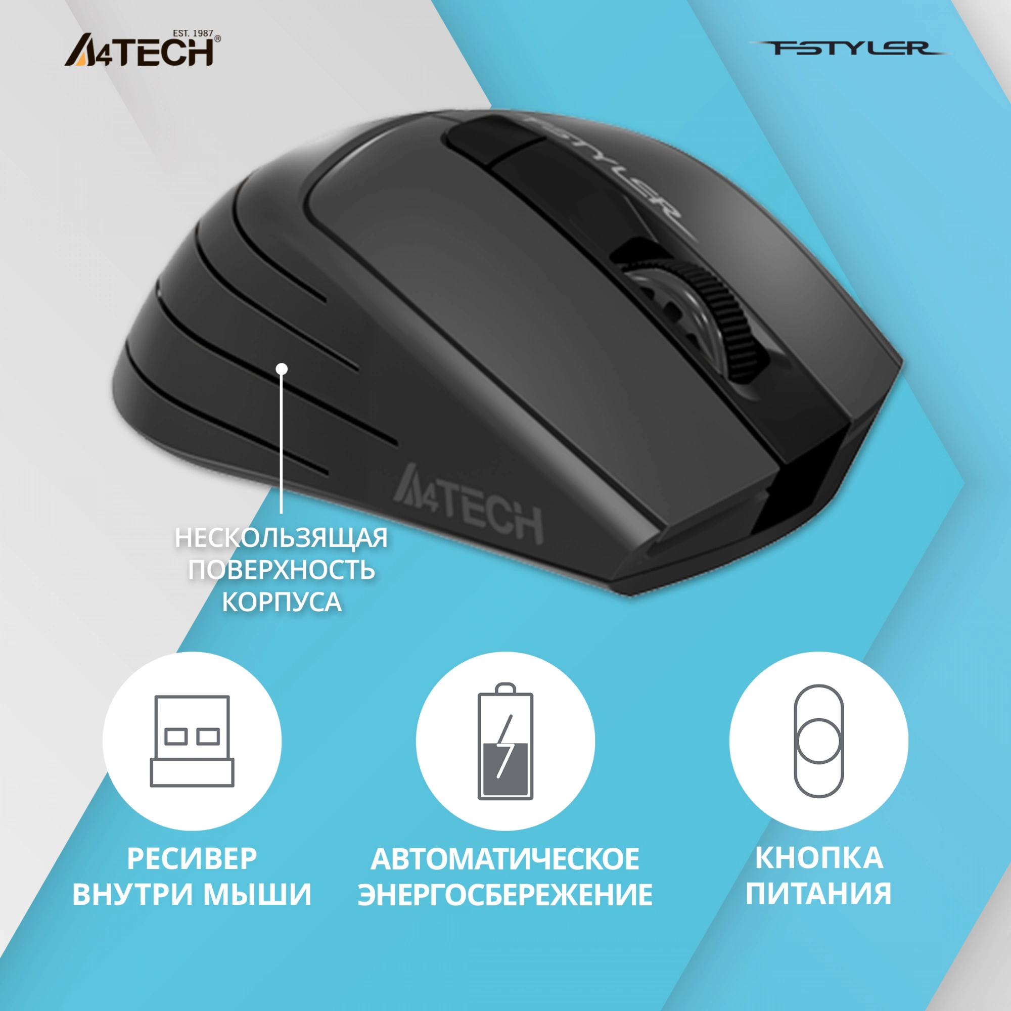 Мышь A4Tech - FG30, Беспроводная, Optical, 2000 dpi, 6 btns, цвет серый, FG30 GREY