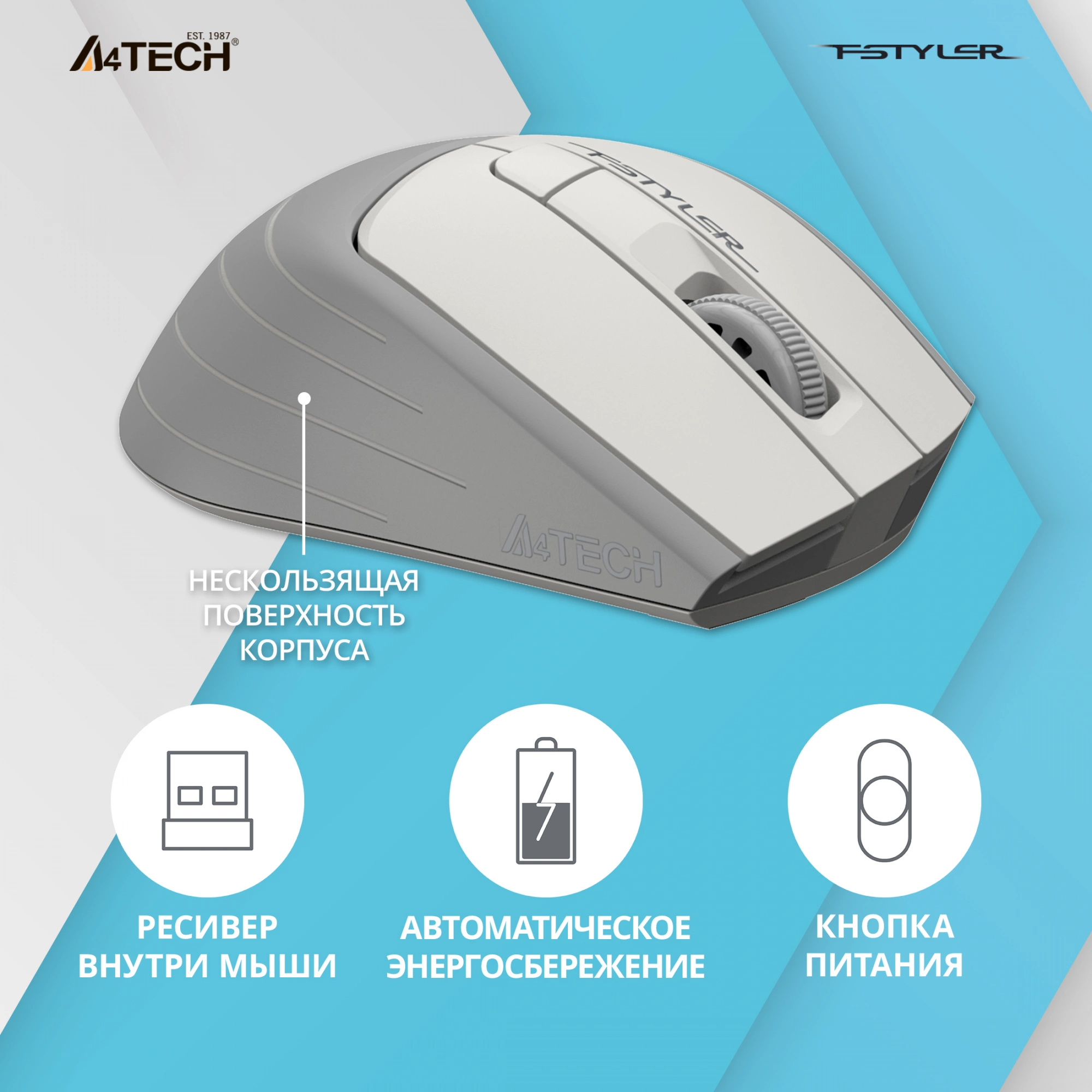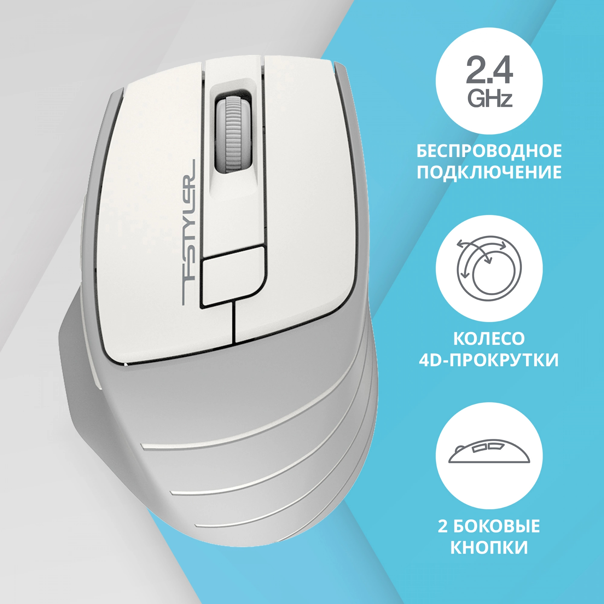 Мышь A4Tech - FG30, Беспроводная, Optical, 2000 dpi, 6 btns, цвет белый, FG30 WHITE