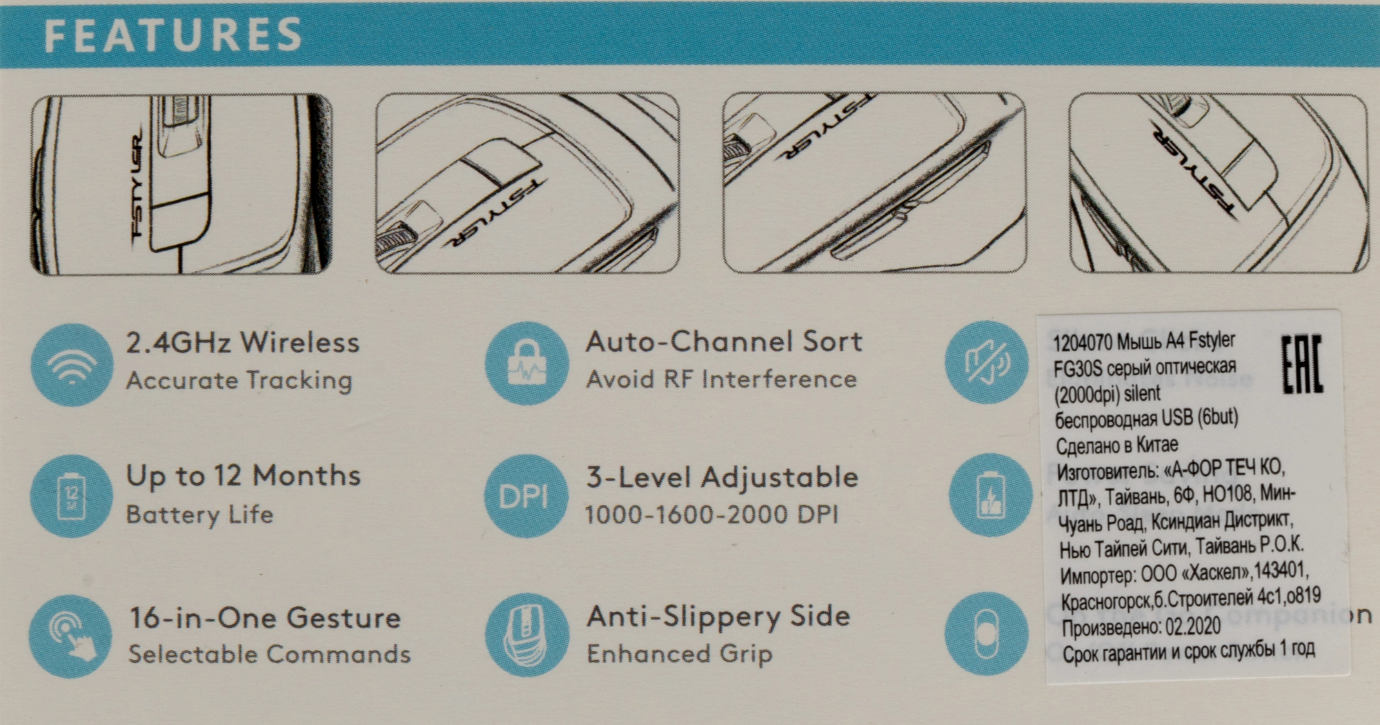 Выбрать товарыМышь A4Tech - FG30S, Беспроводная, Optical, 2000 dpi, 6 btns, цвет серый, FG30S GREY