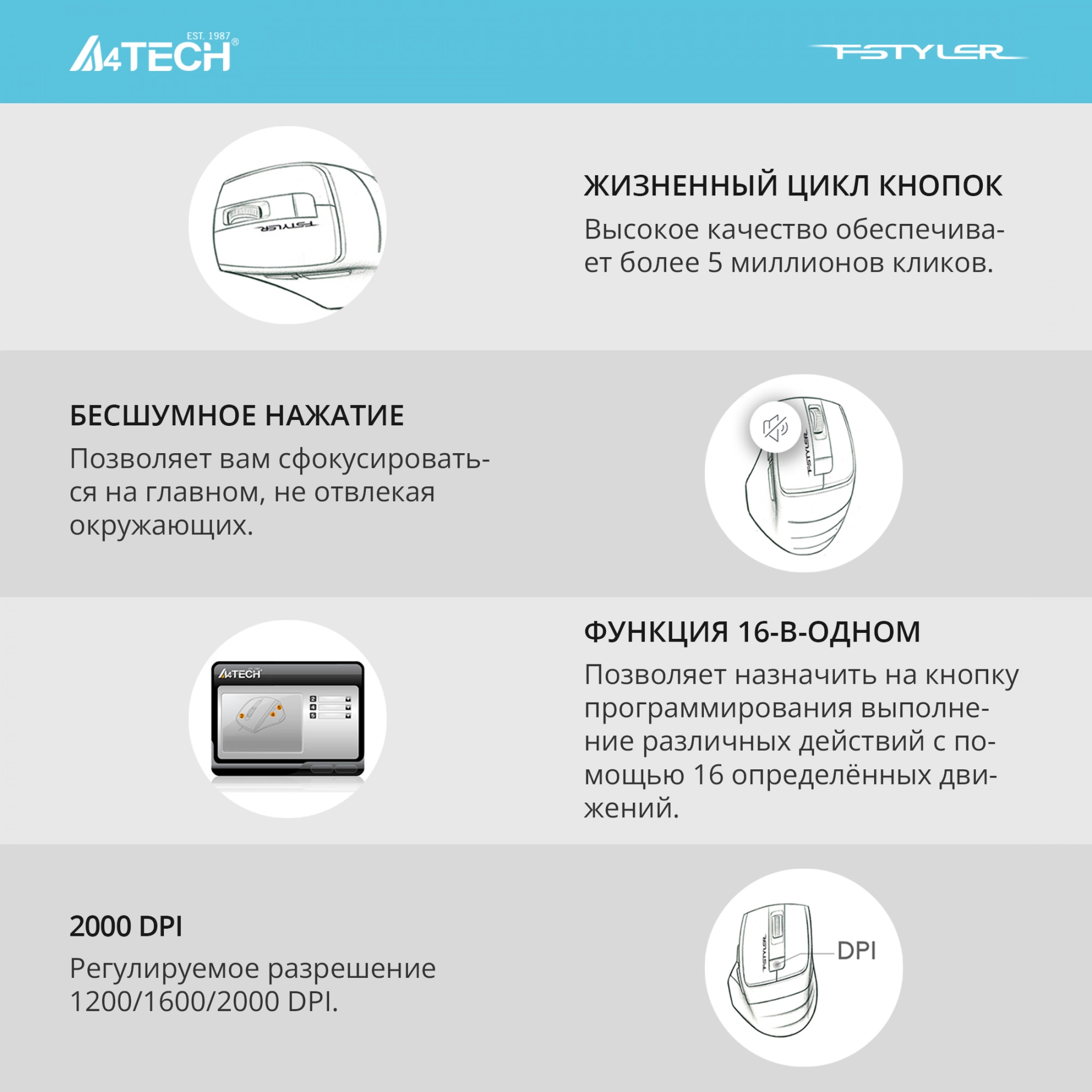 Мышь A4Tech - FG30S, Беспроводная, Optical, 2000 dpi, 6 btns, цвет серый, FG30S GREY