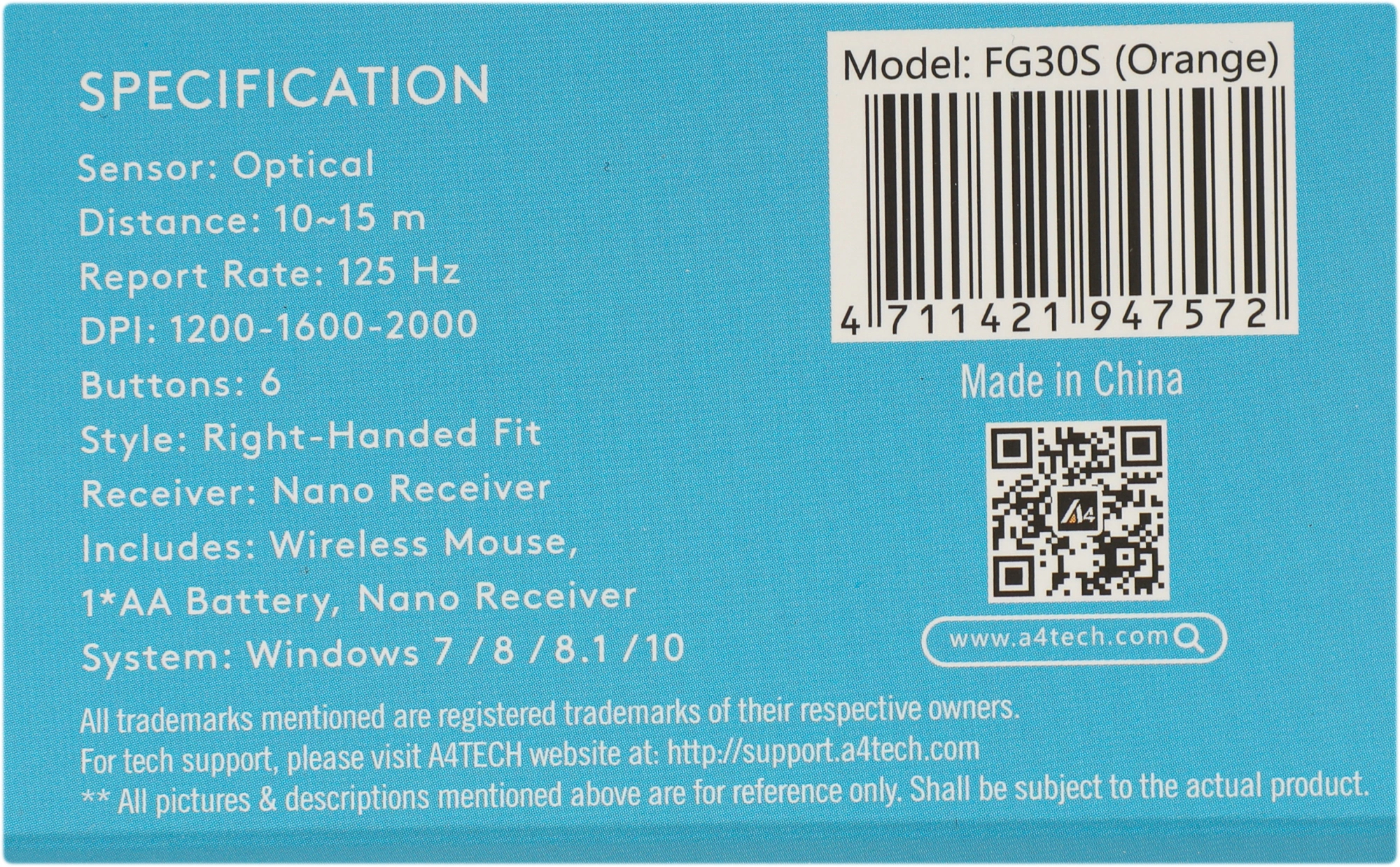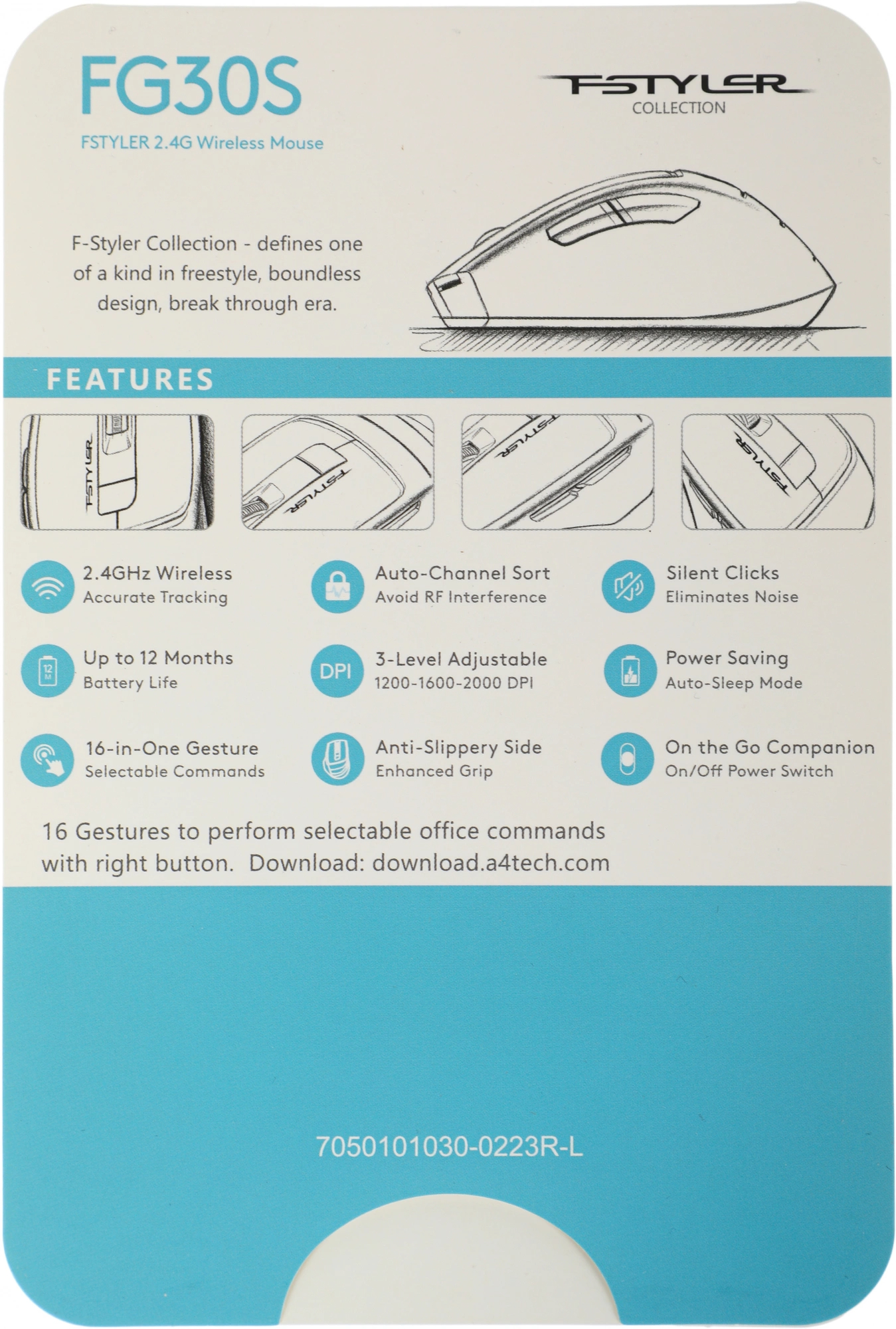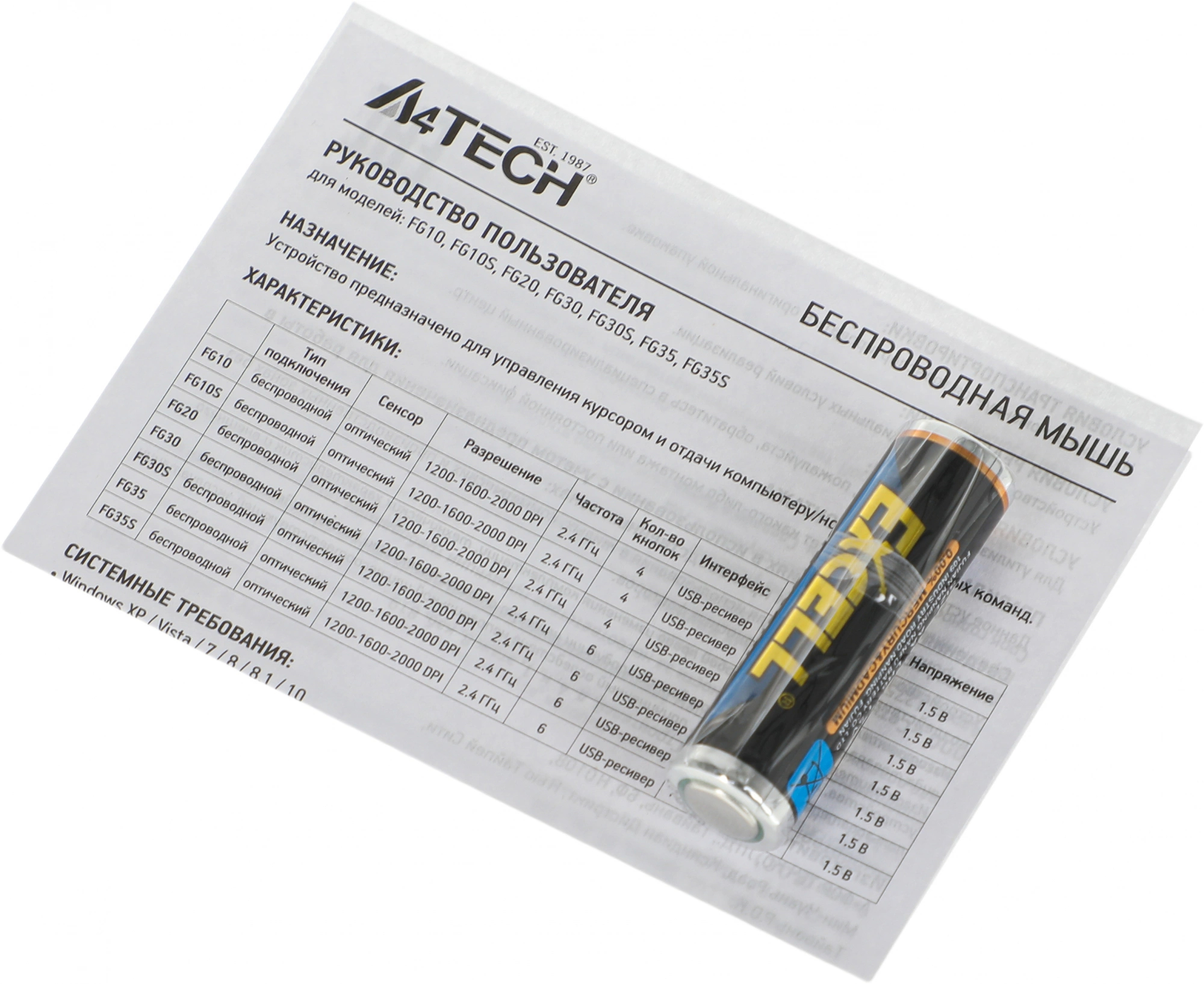 Мышь A4Tech - FG30S, Беспроводная, Optical, 2000 dpi, 6 btns, цвет серый, FG30S ORANGE