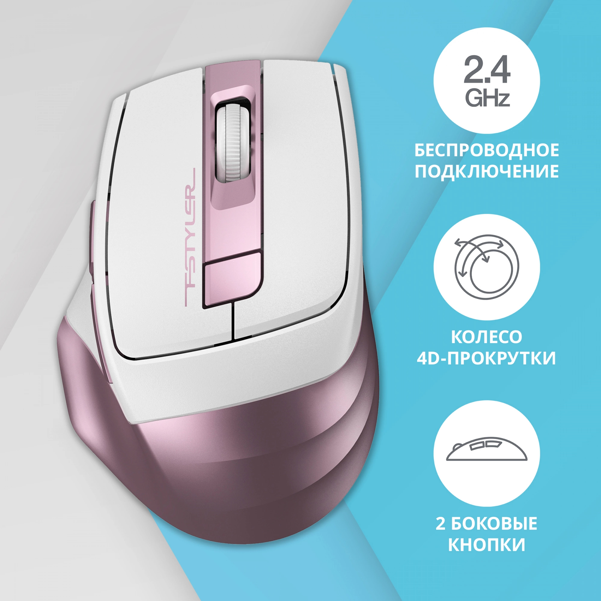 Мышь A4Tech - FG35, Беспроводная, 10 метров, USB, Optical, 1200 - 2000 dpi, 5 btns, цвет розовый, FG35 PINK
