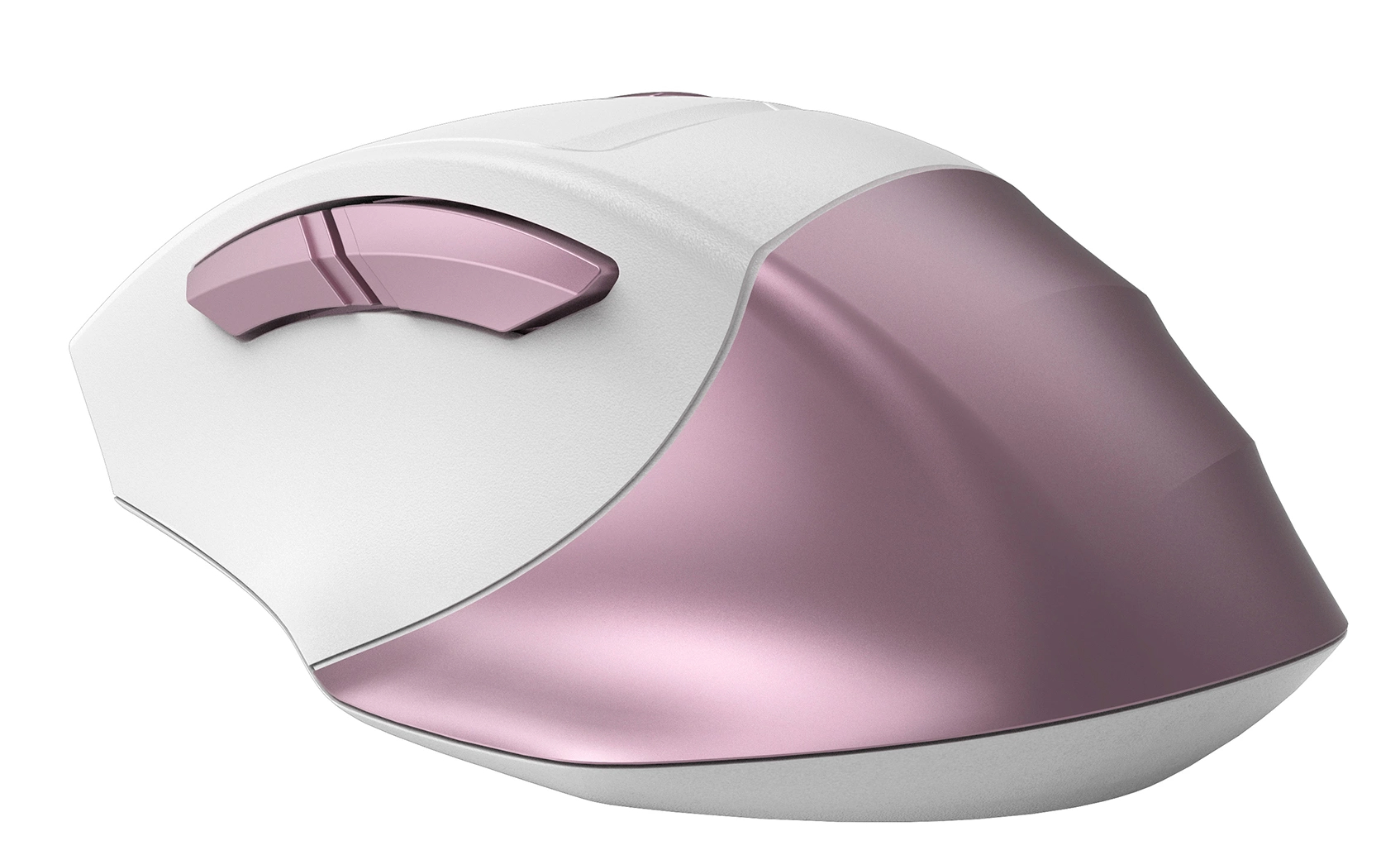 Розовая мышь сочетает форму и точность: сенсор не дрожит, кнопки чётко срабатывают, корпус лёгкий, долго работает без подзарядки, хват комфортный, не вызывает усталости при длительной работе.