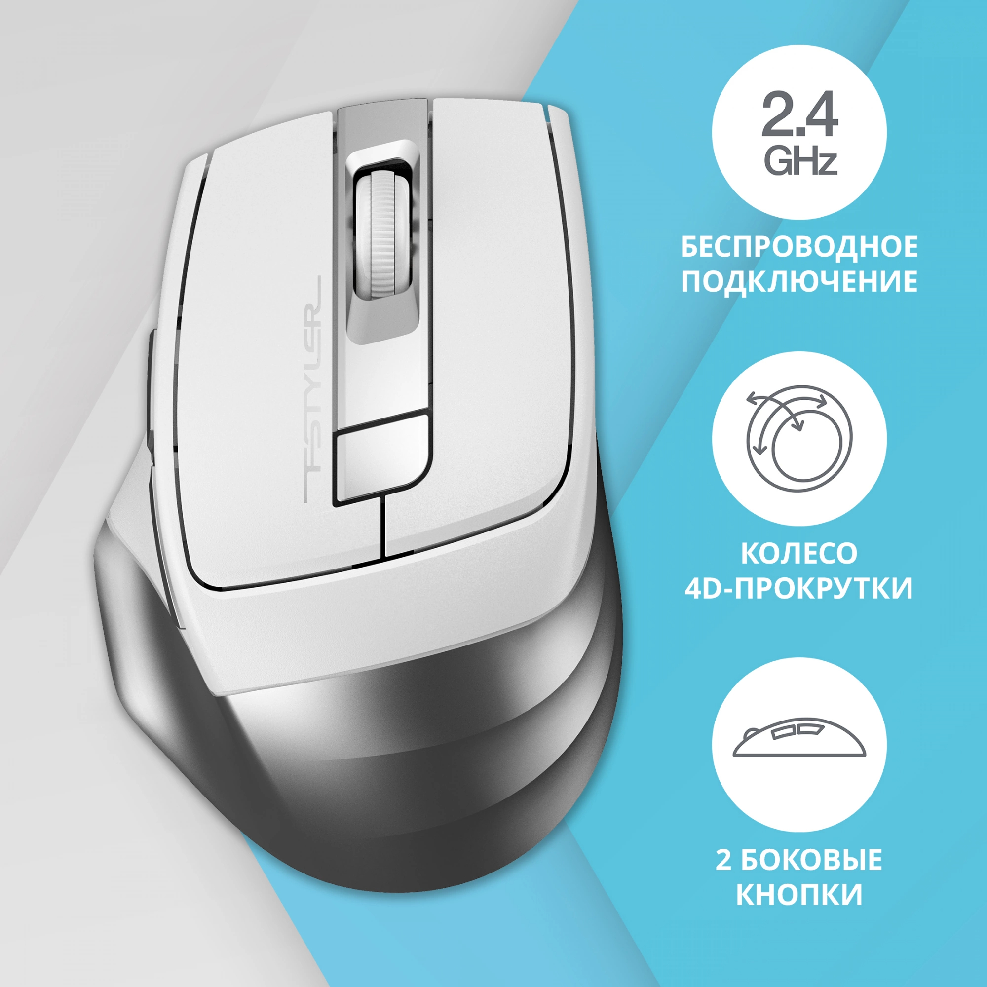 Мышь A4Tech - FG35, Беспроводная, Optical, 2000 dpi, 6 btns, цвет белый, FG35 SILVER