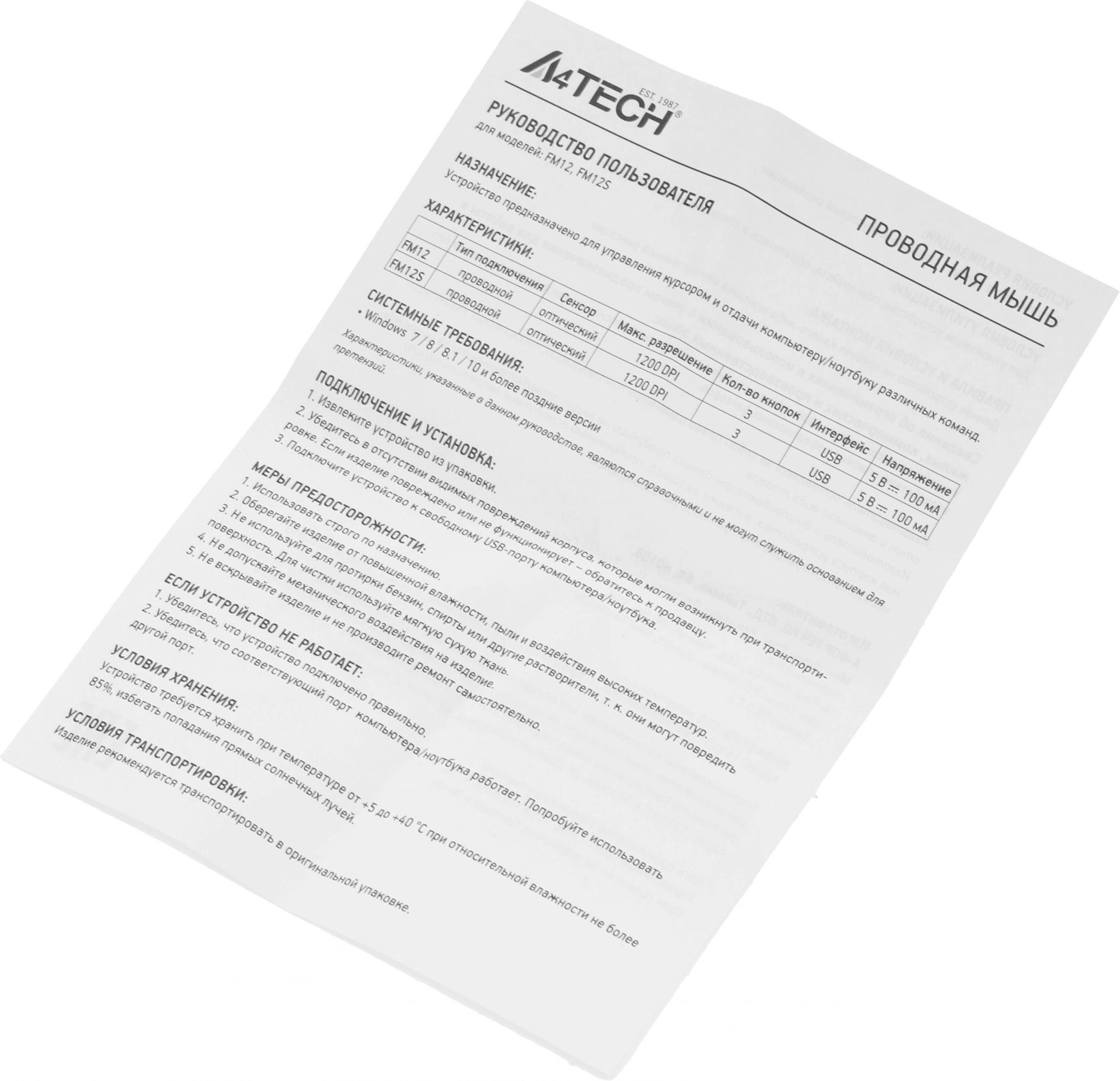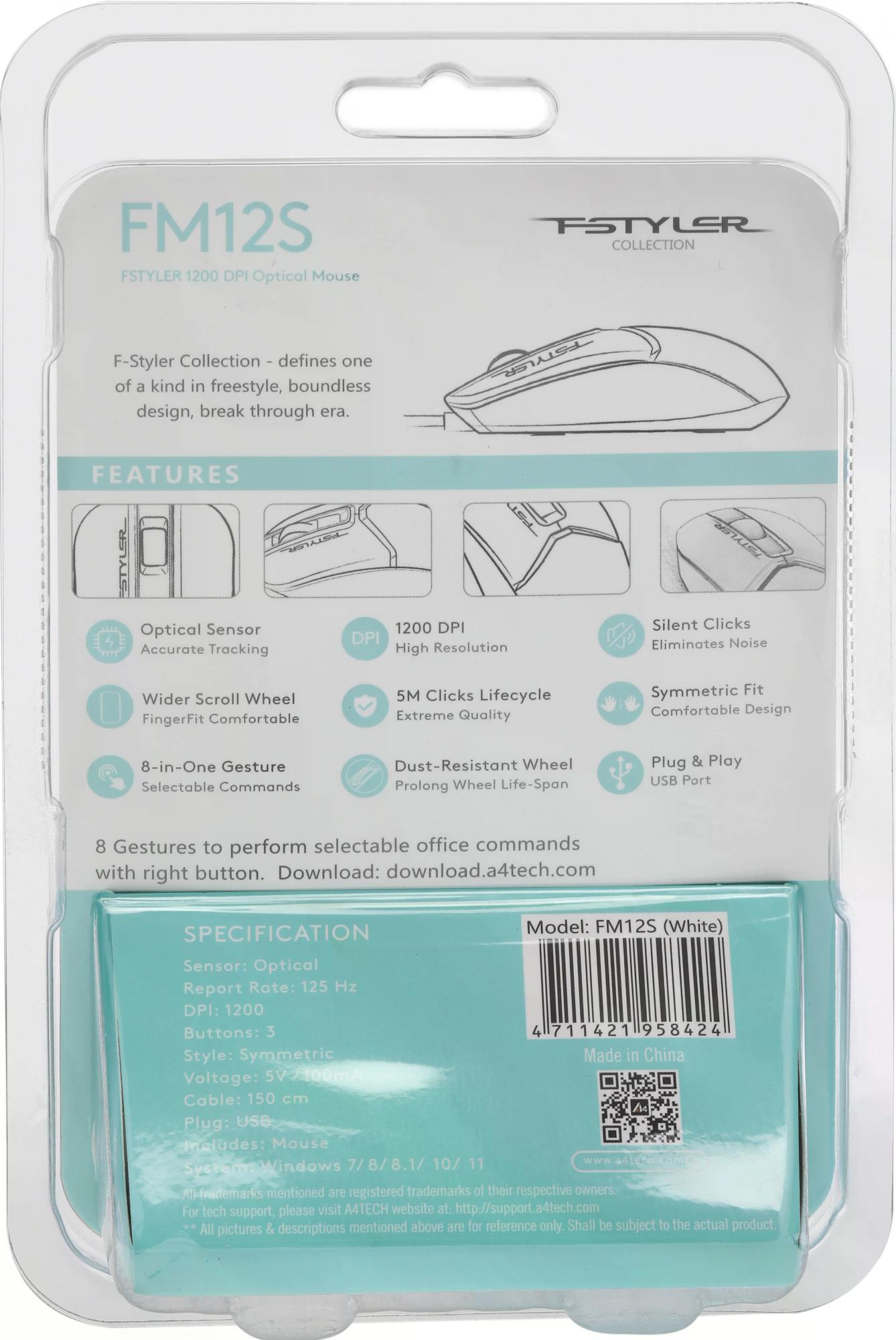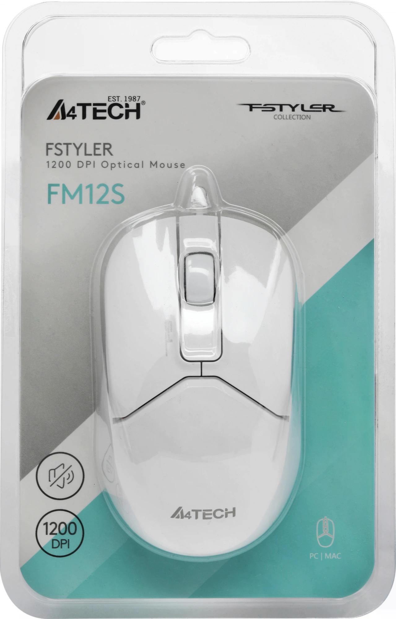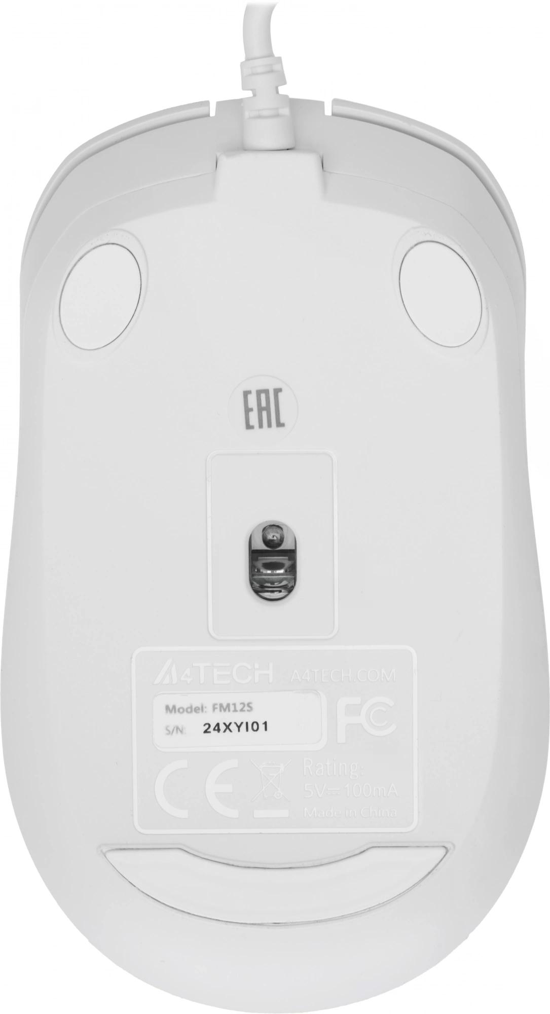 Мышь A4Tech FM12S Проводная белый, FM12S WHITE
