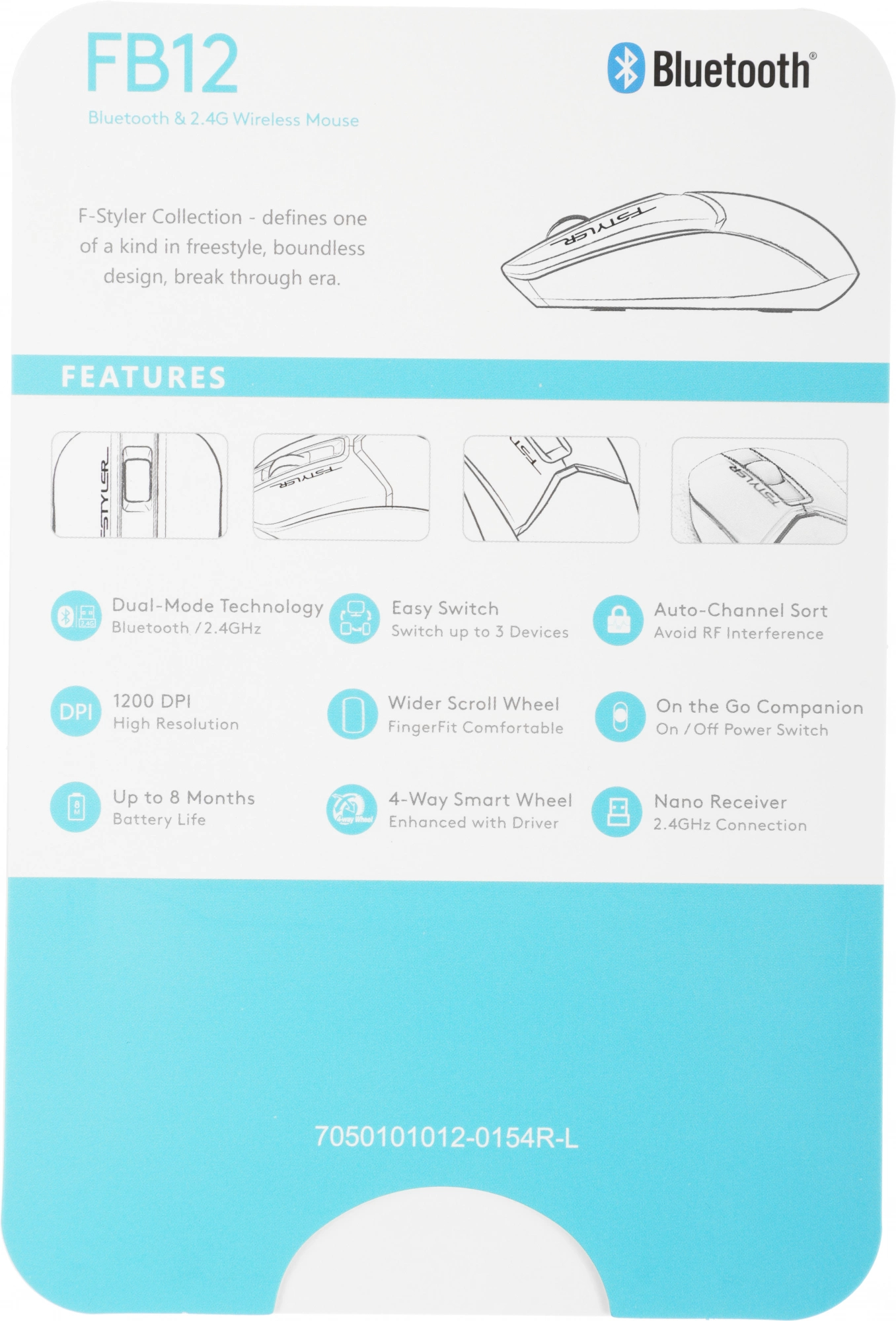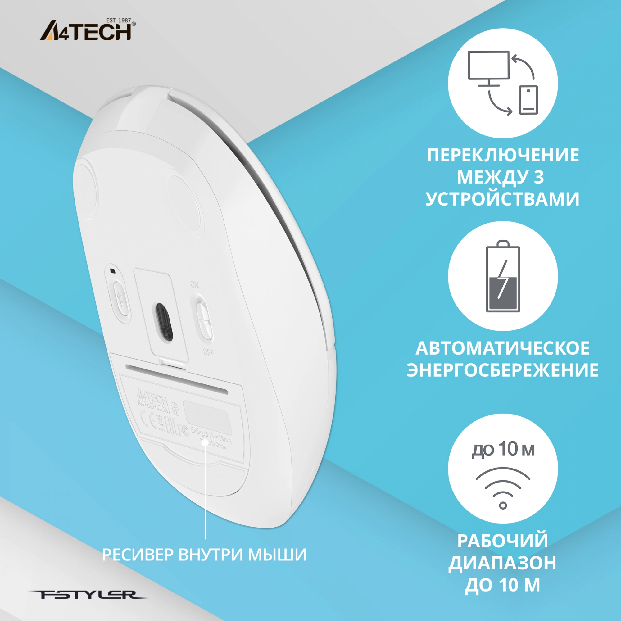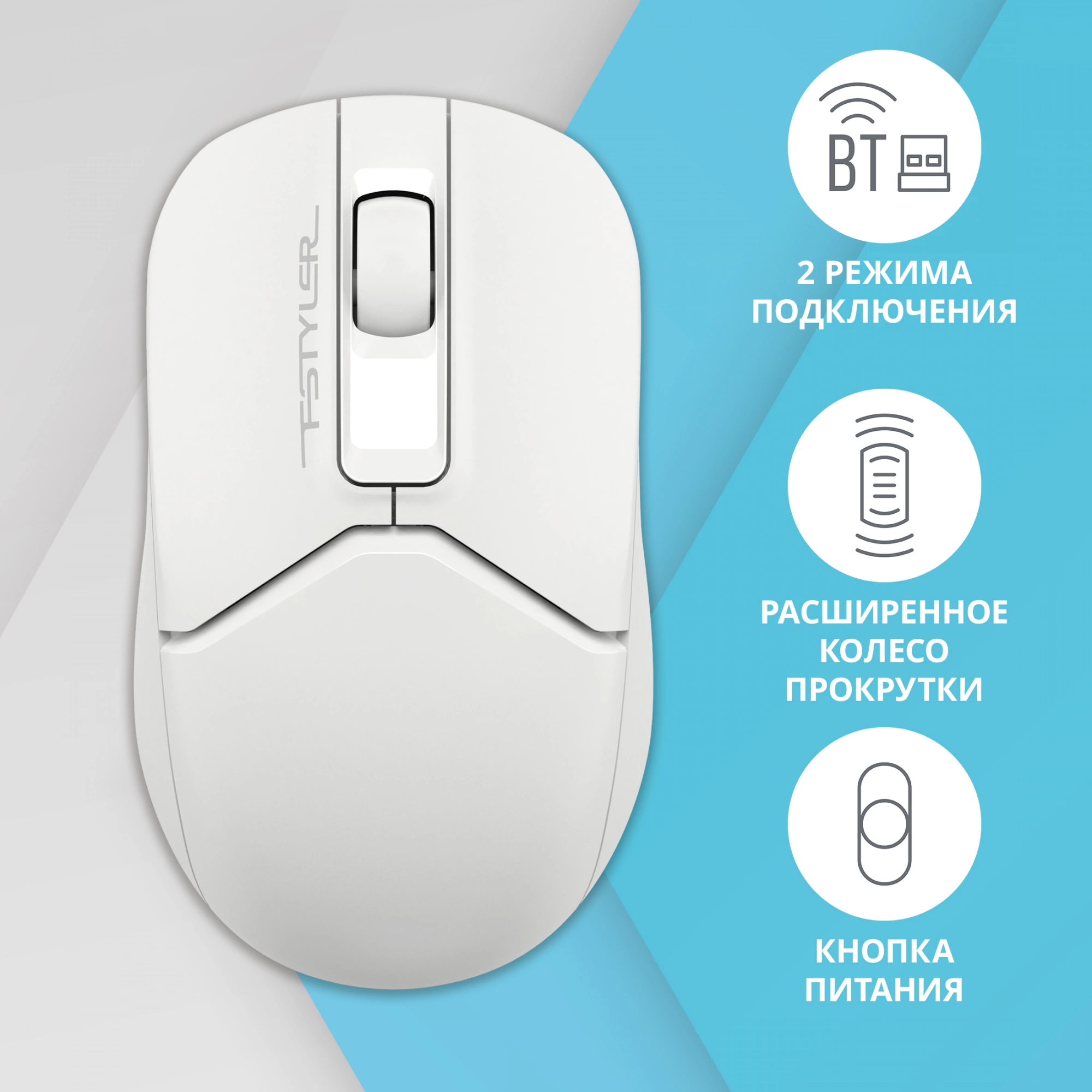 Мышь A4Tech - Fstyler FB12, Беспроводная, Optical, 3 btns, цвет белый, FB12 WHITE