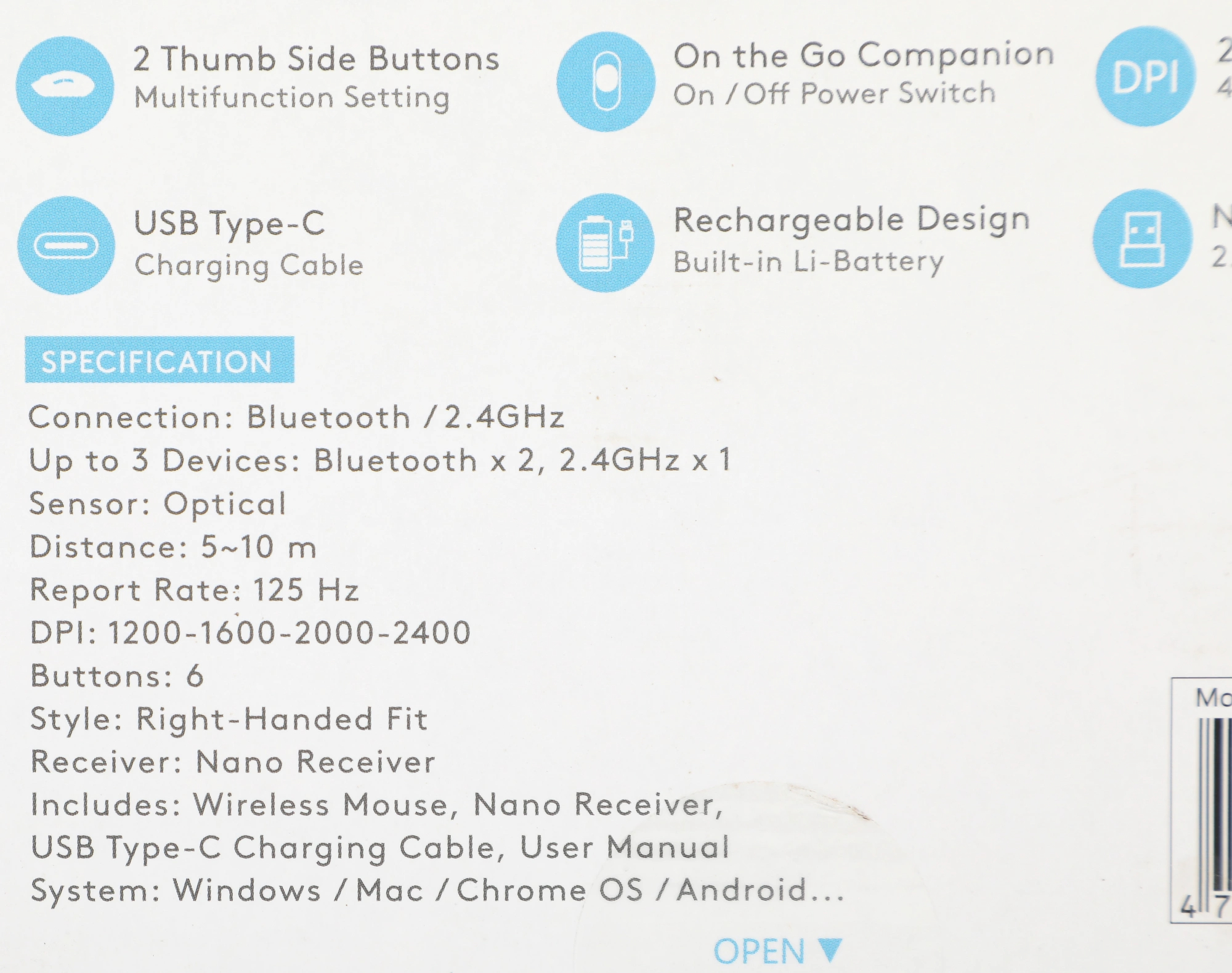 Подключил к ноутбуку, сигнал держит метра на 2–3. Кнопки негромкие, есть приятный щелчок. Колёсико не прокручивается самопроизвольно, фиксация шаговая. Одна батарейка, пока не разрядилась, обещают месяцами работать.