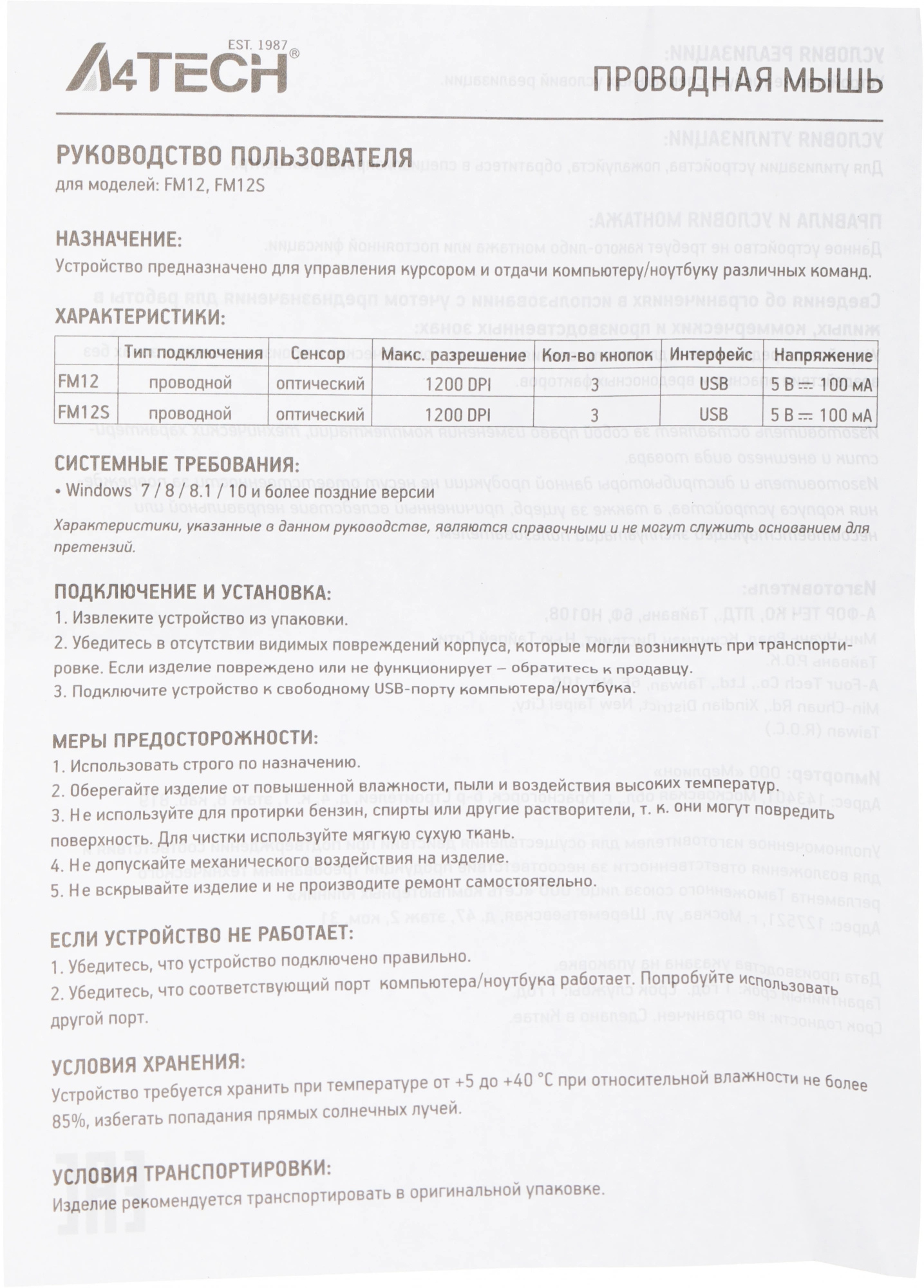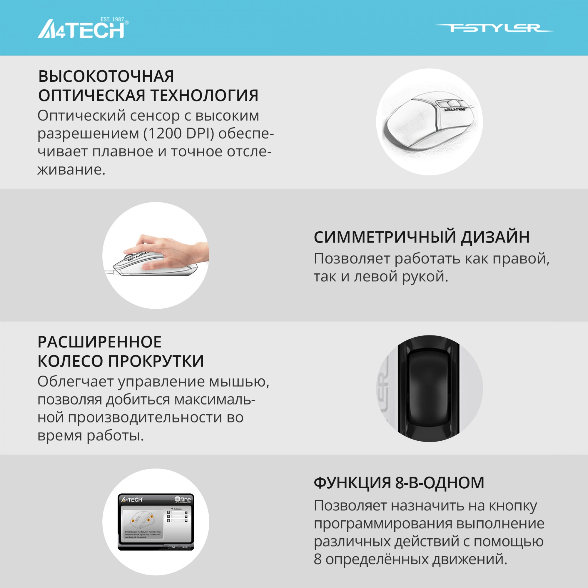 Выбрать товарыМышь A4Tech - Fstyler FM12, Проводная, USB, Optical, 3 btns, цвет чёрно-белый, FM12 PANDA