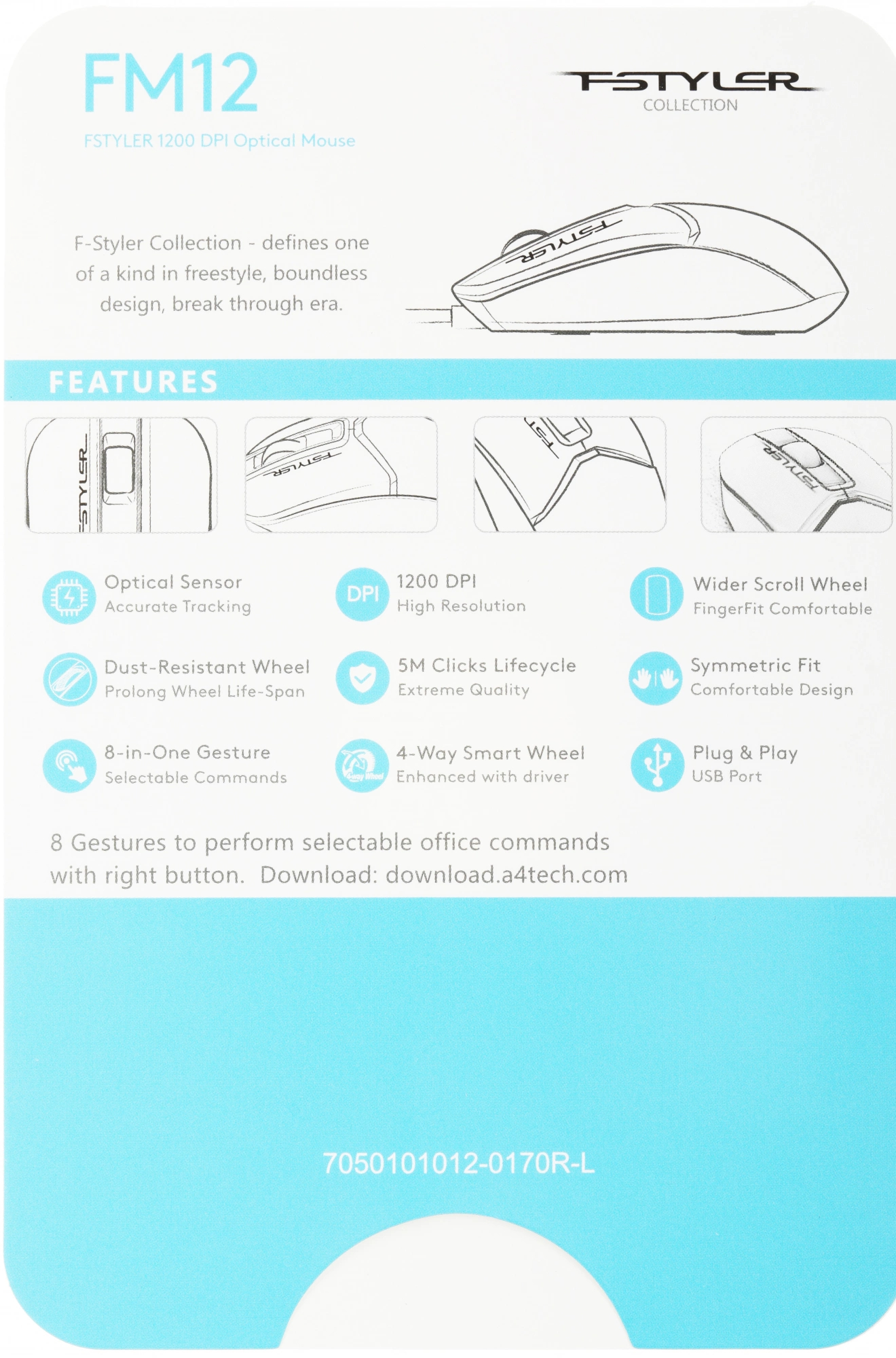 Мышь A4Tech - Fstyler FM12, Проводная, USB, Optical, 3 btns, цвет чёрно-белый, FM12 PANDA